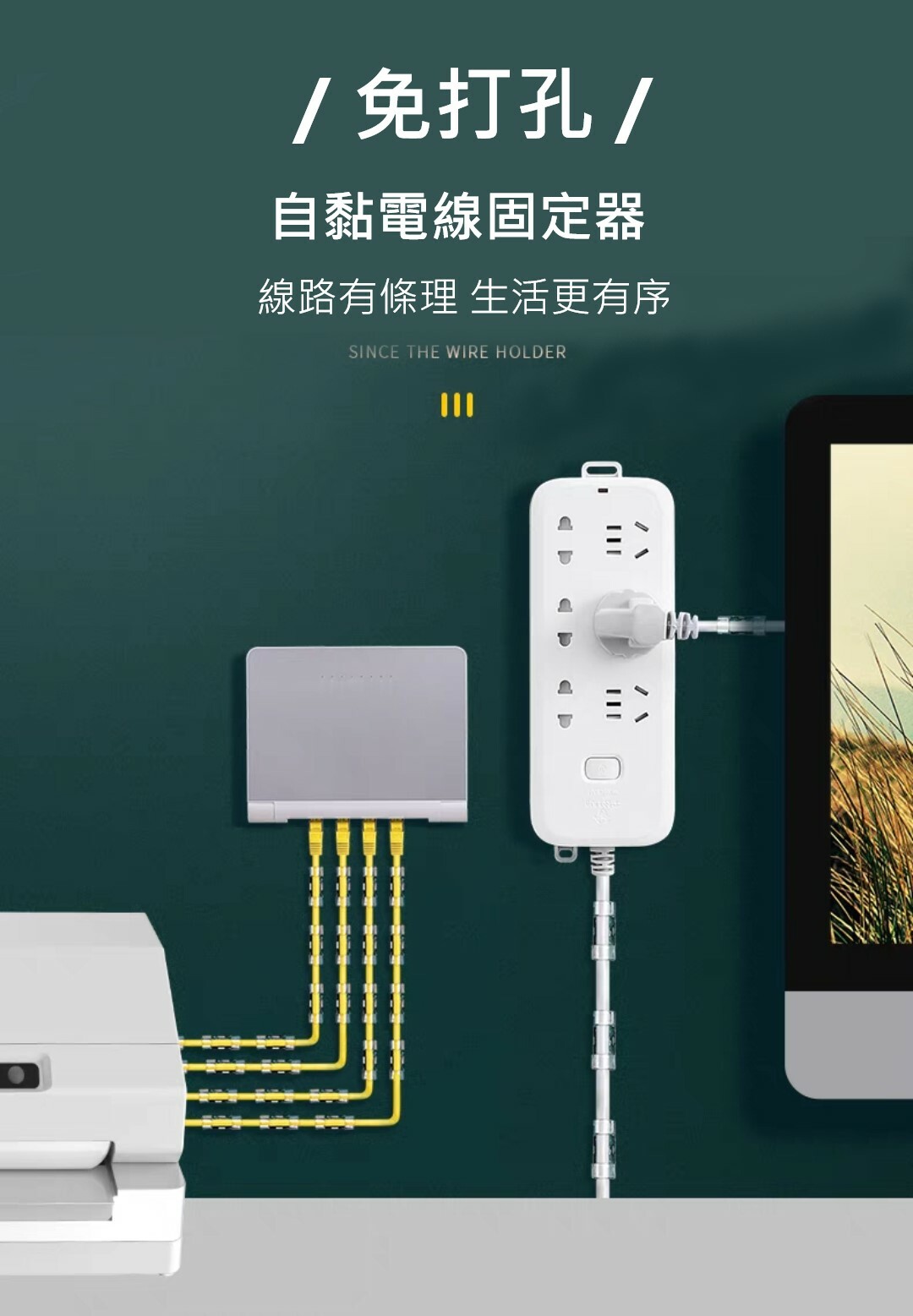 免打孔背膠式線材固定器
