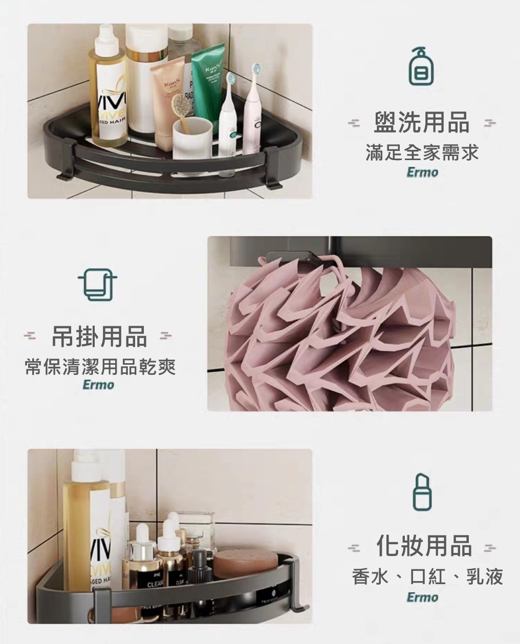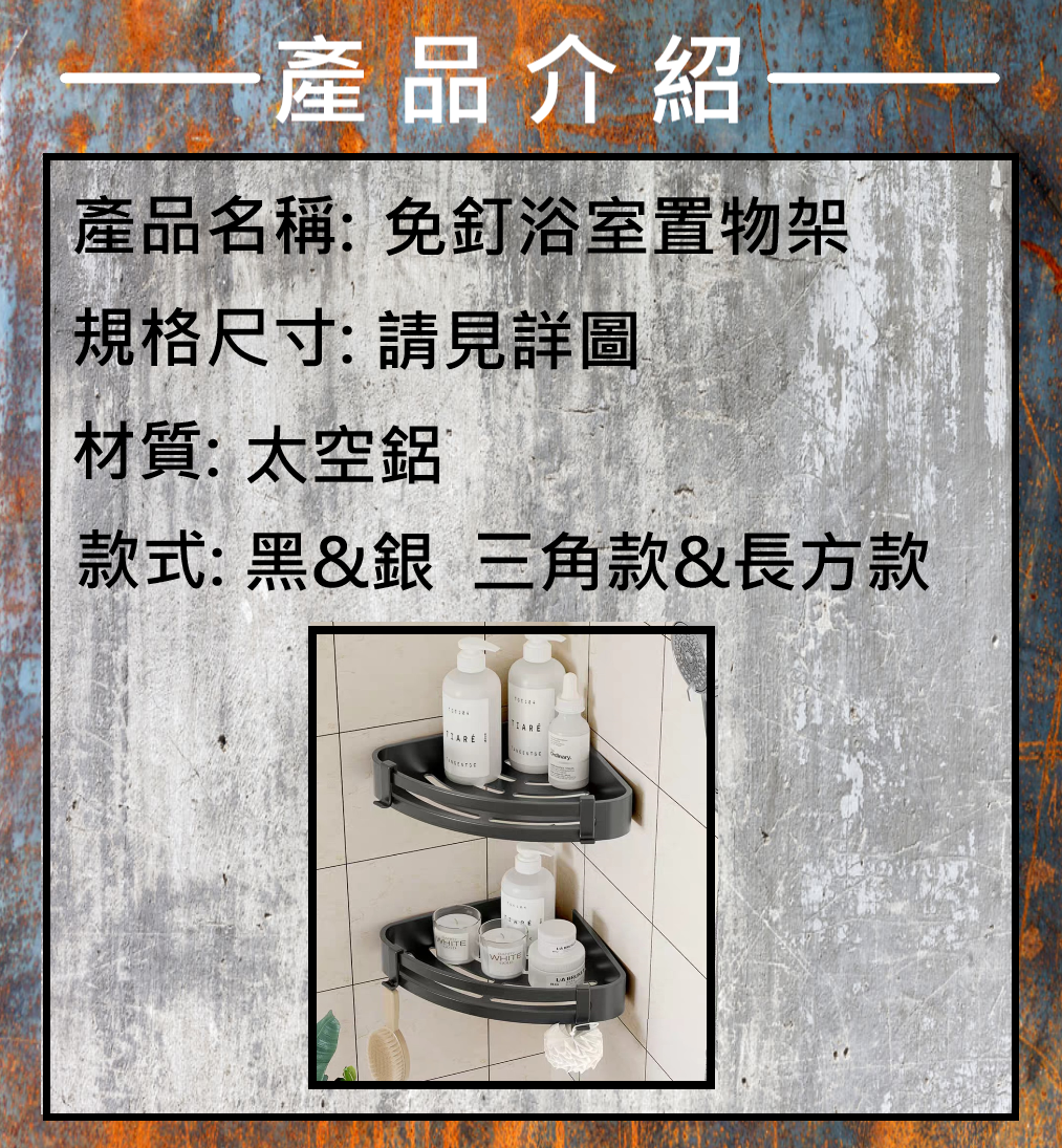 北歐風浴室專用免釘置物架