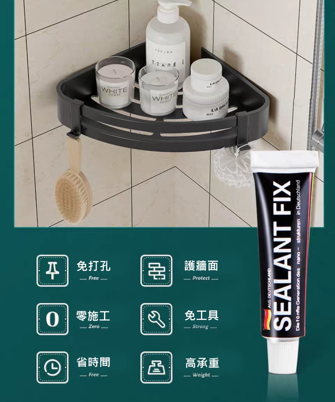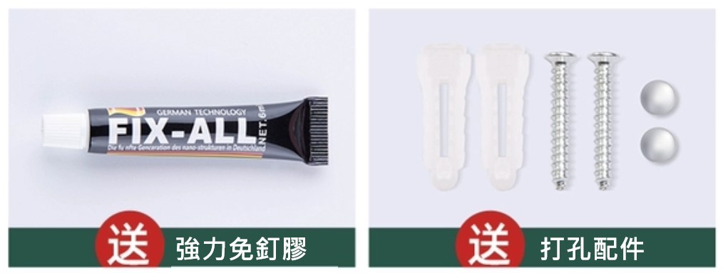 隨貨還附贈打孔安裝零件及免釘黏膠