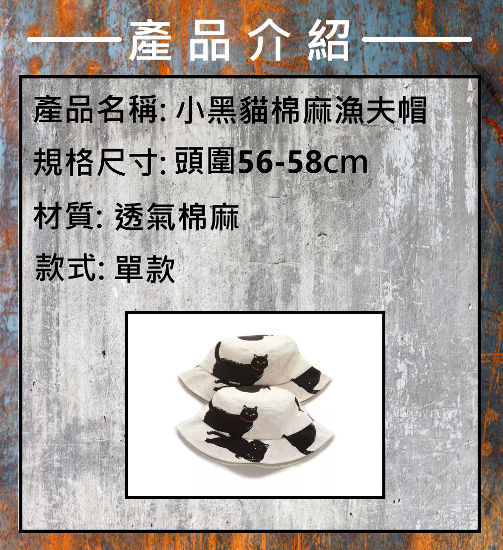 這款小黑貓棉麻漁夫帽 柔軟透氣材質