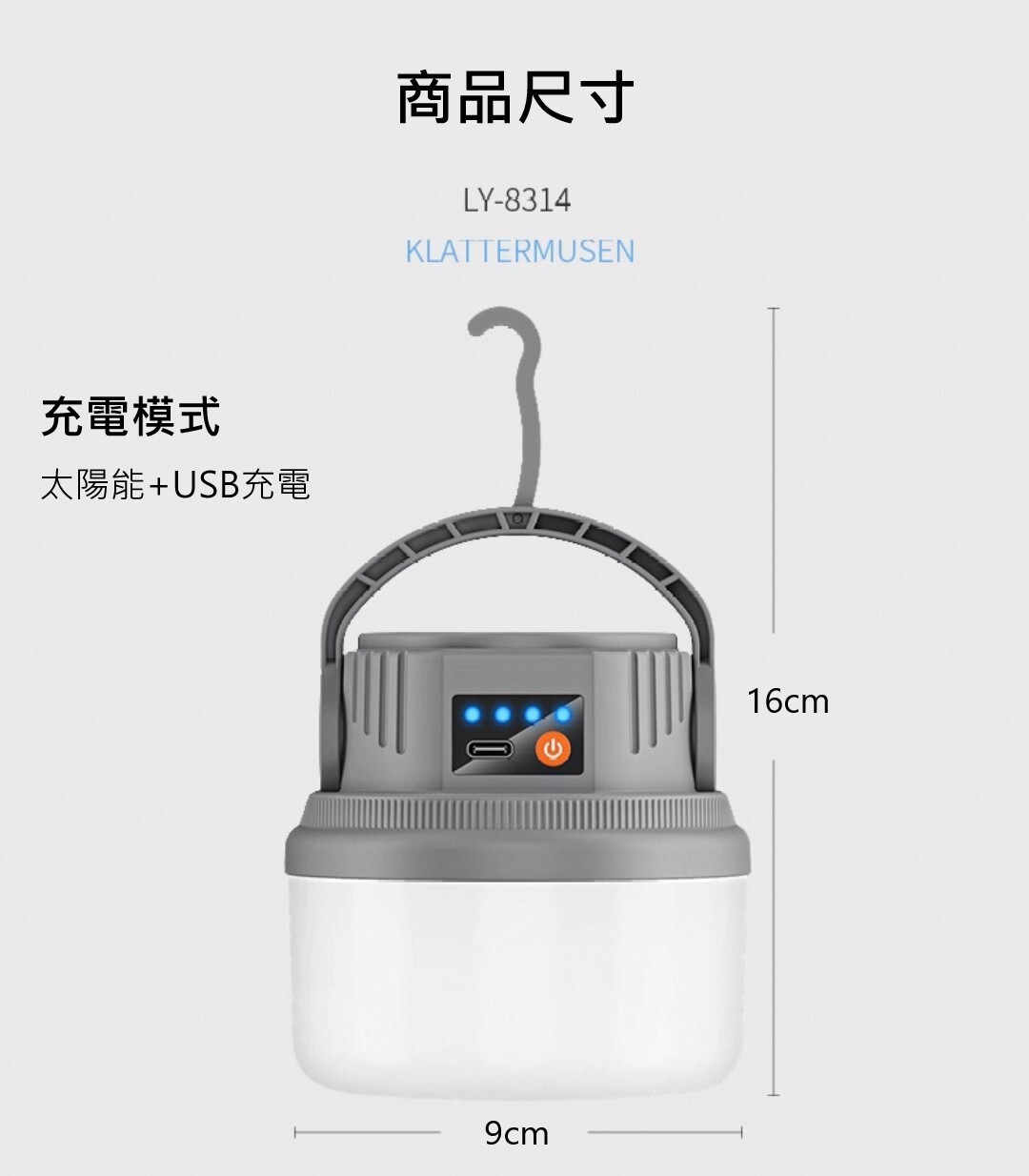 這款太陽能戶外露營燈 太陽能快充設計