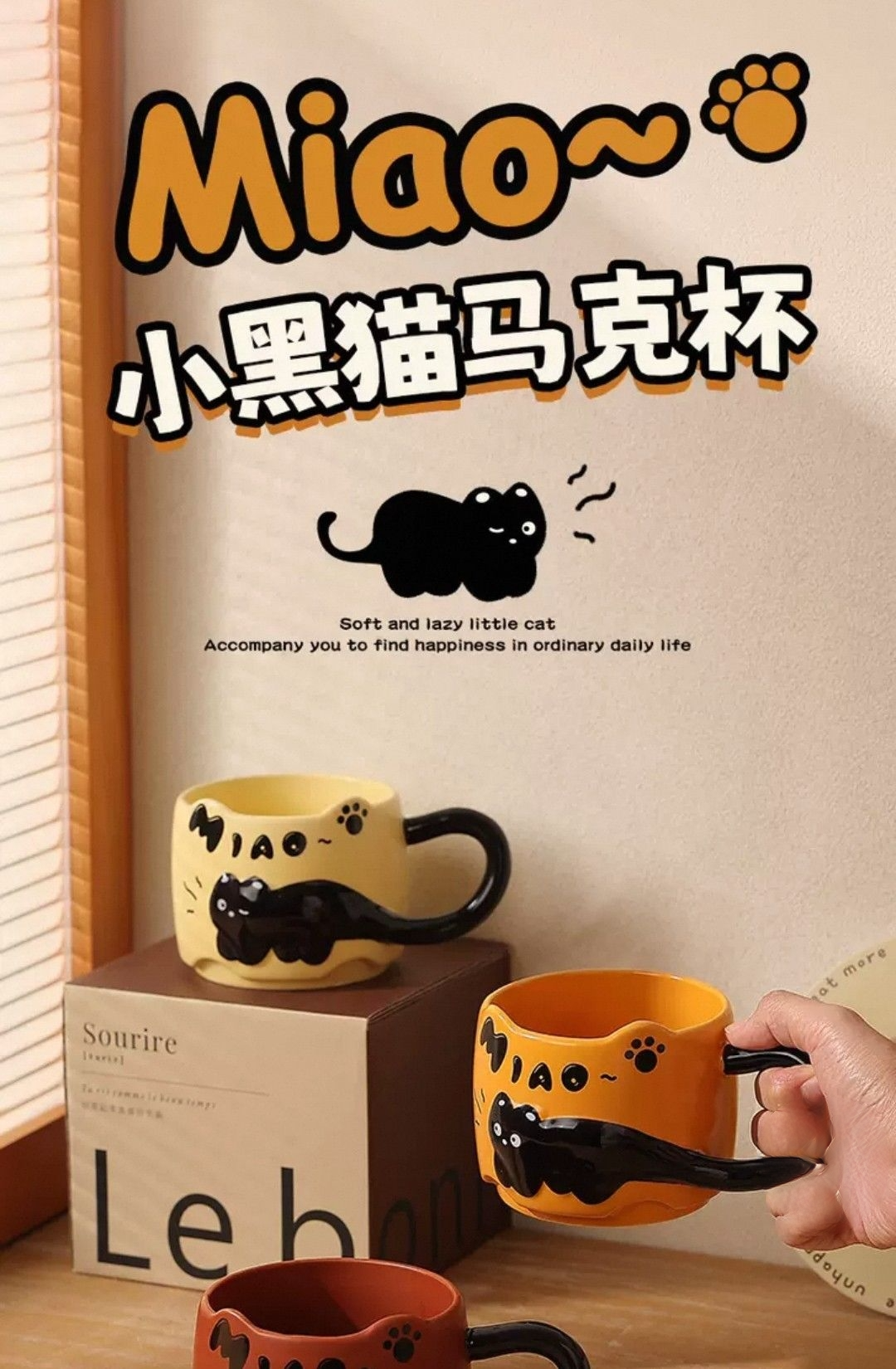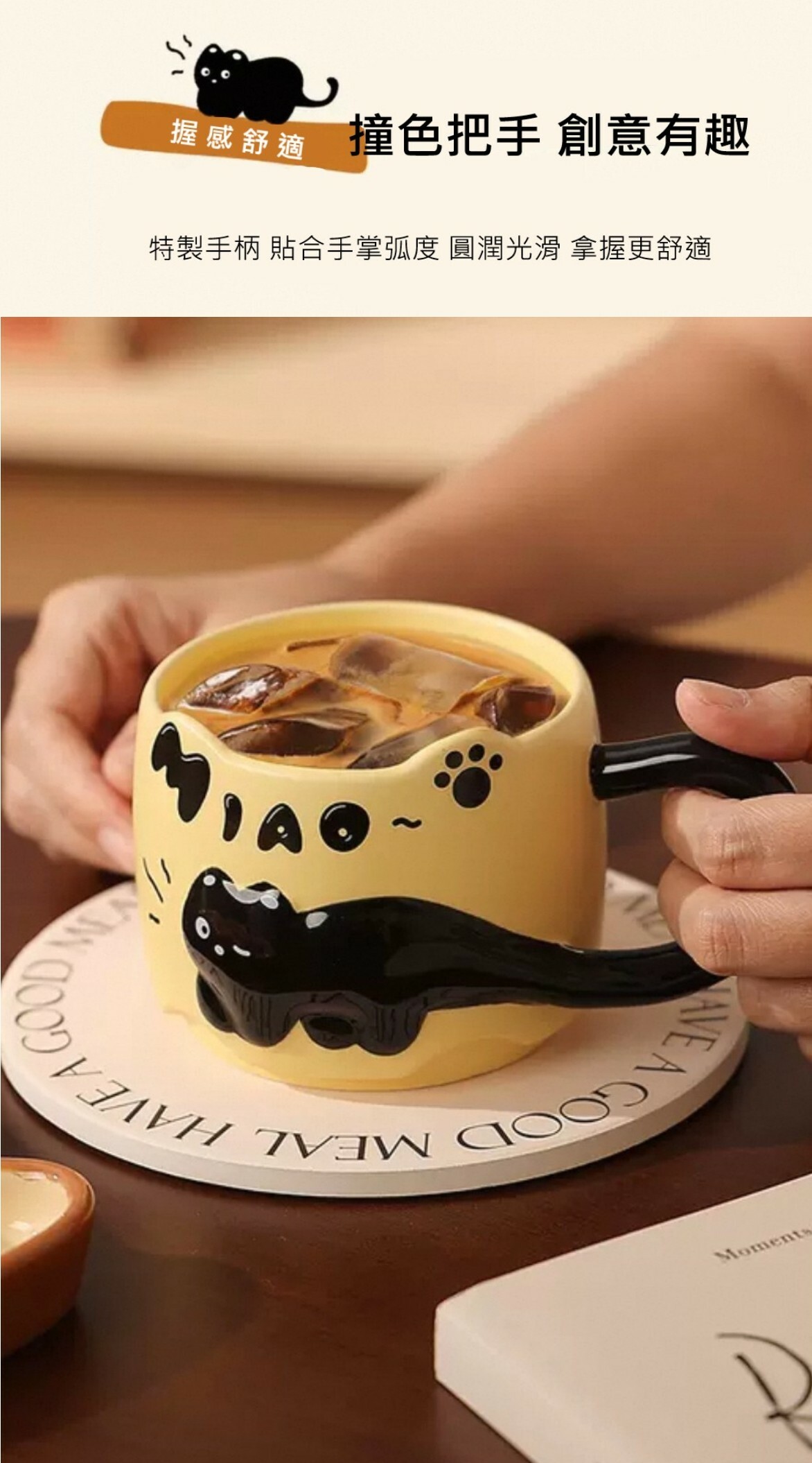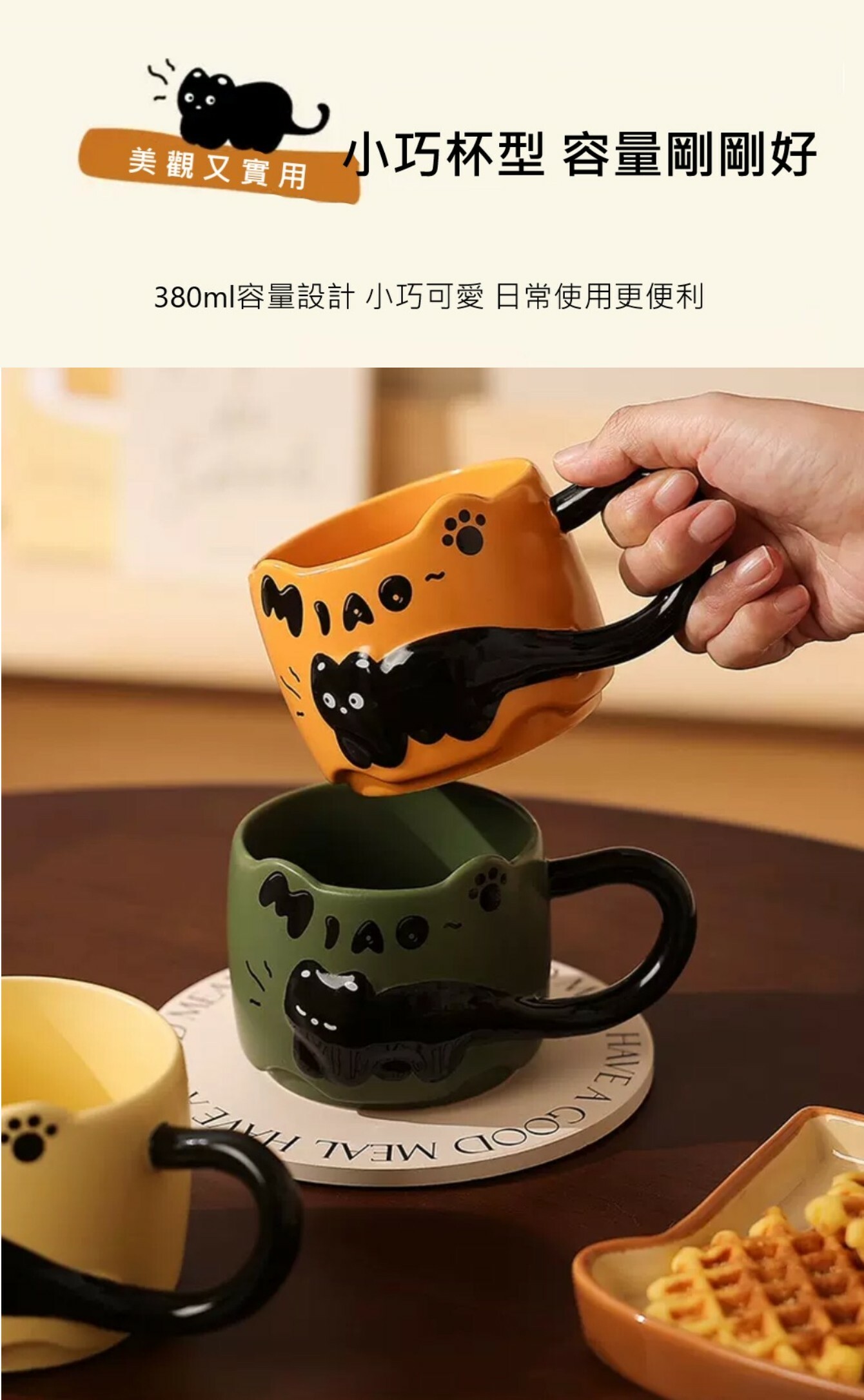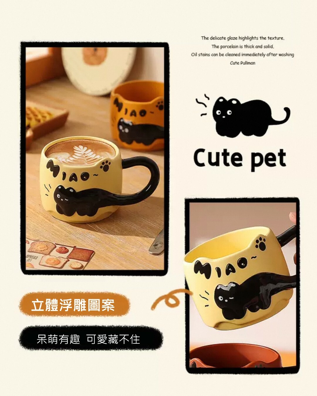 杯身細膩光滑 立體黑貓圖樣栩栩如生