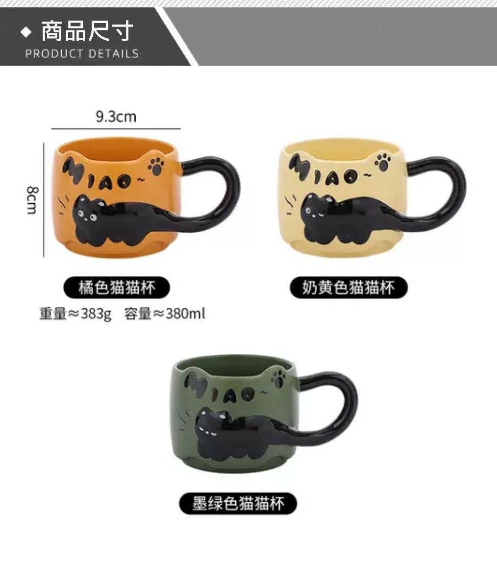浮雕小黑貓馬克杯採用高質感陶瓷製成