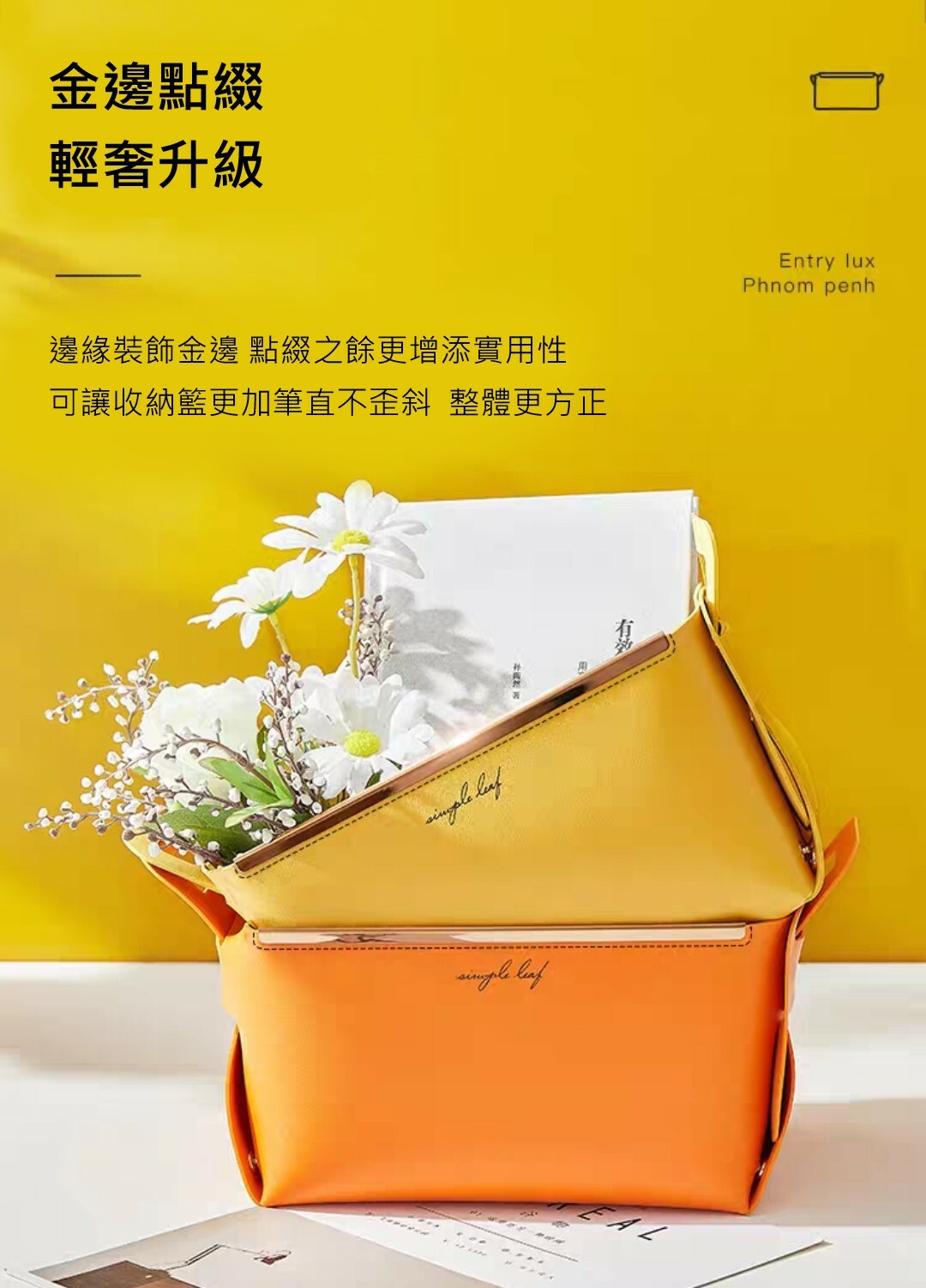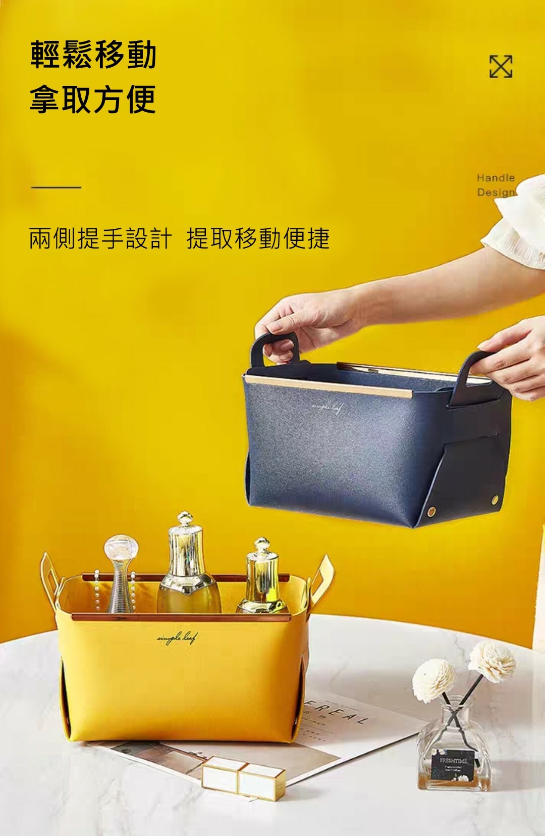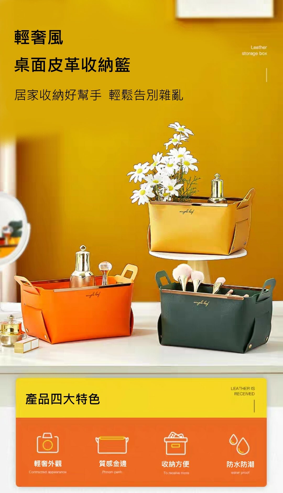 輕奢風大容量皮革收納籃