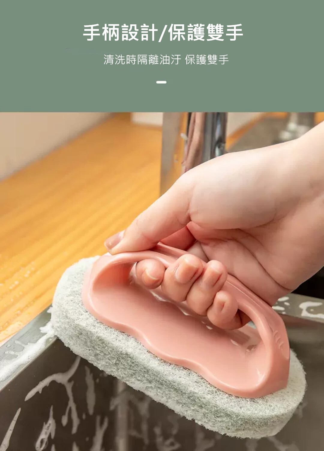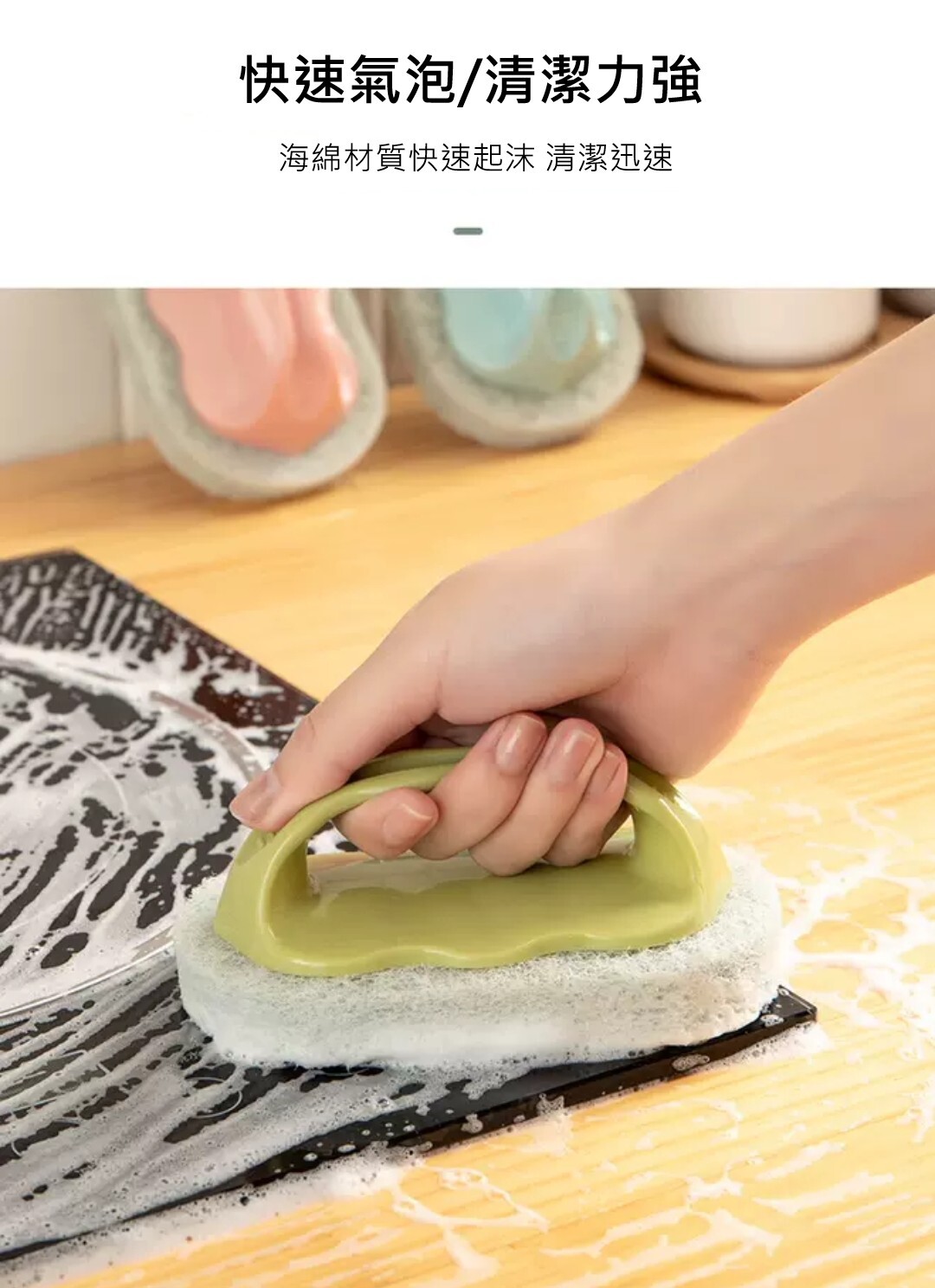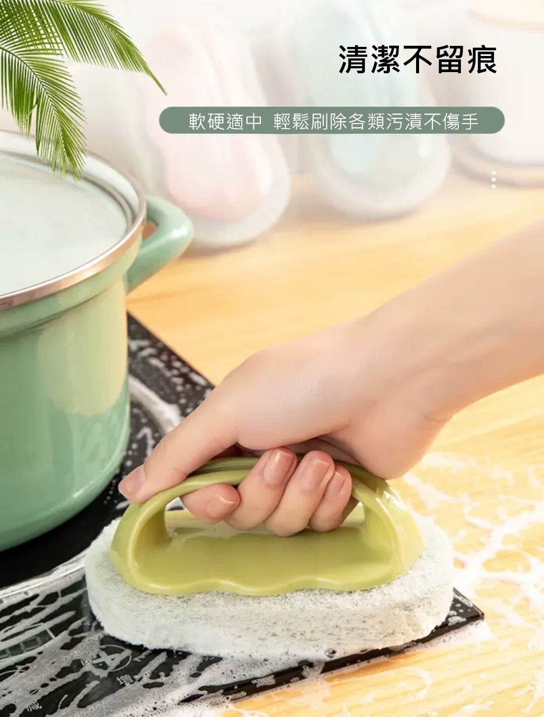 搭配柔韌海綿不傷鍋 泡沫細密、好清潔