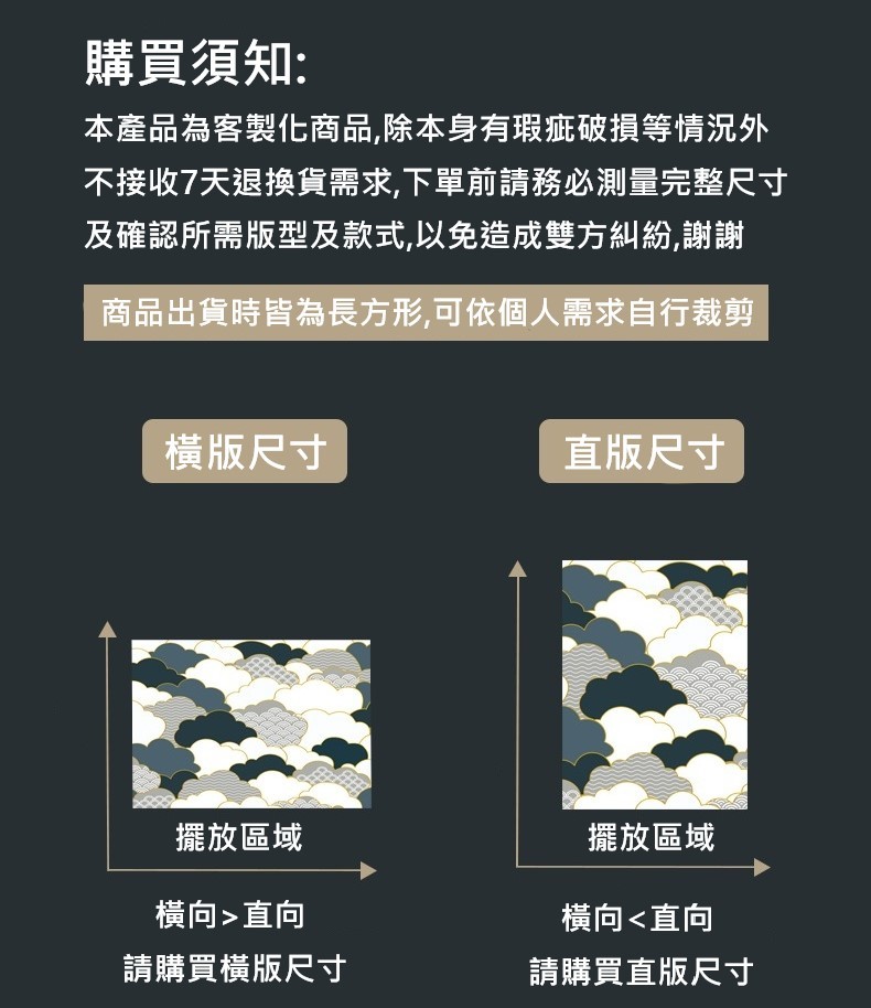 地墊類皆為訂製商品,出貨時間約10-14個工作天(急需者請勿下單)