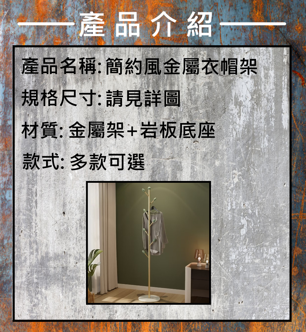 簡約風岩板金屬衣帽架