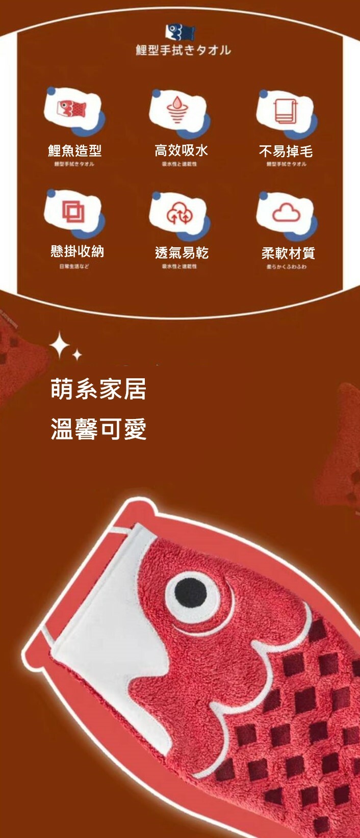 可愛的鯉魚旗擦手巾 獨特造型