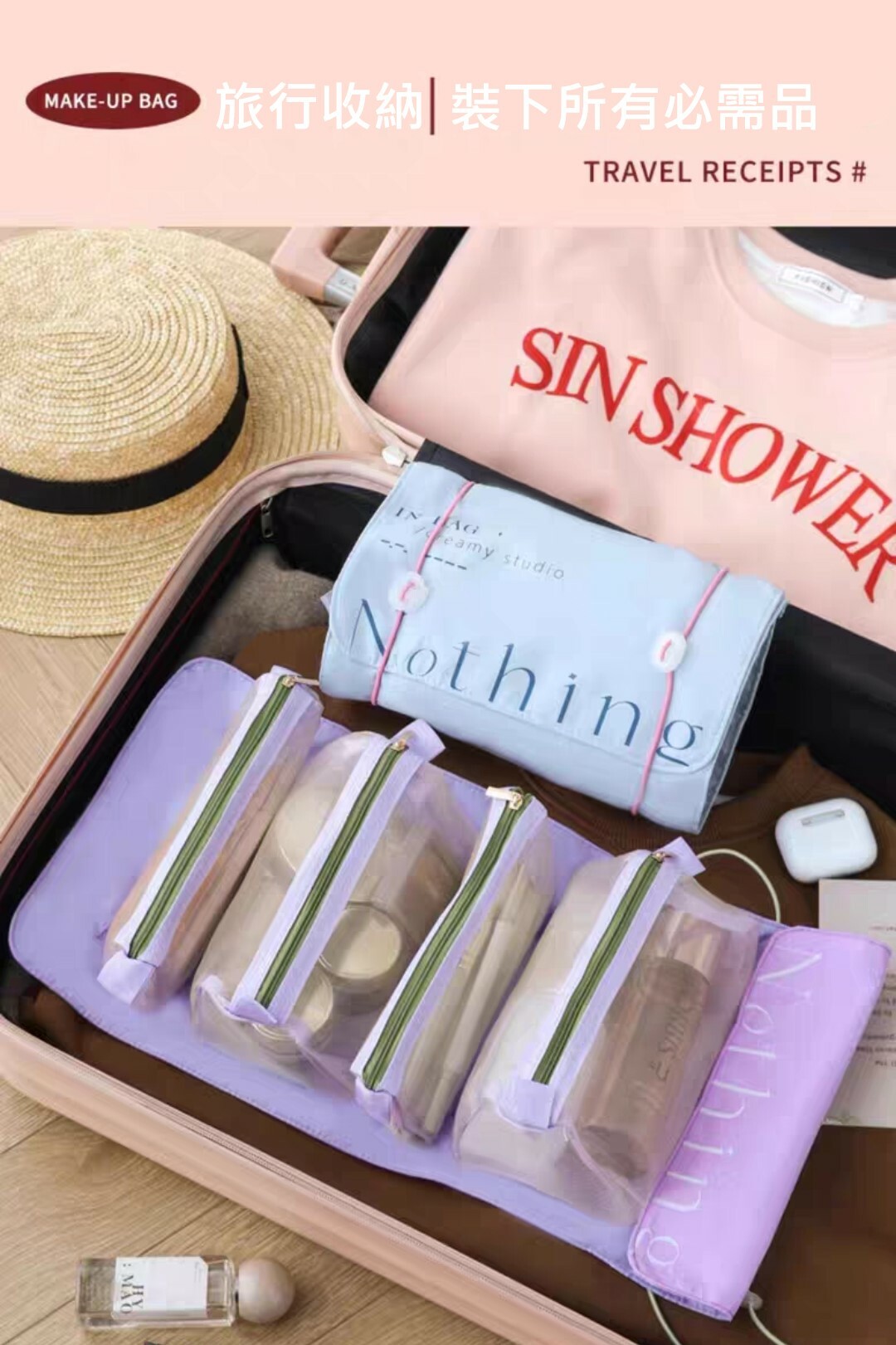 旅行用大容量折疊化妝包