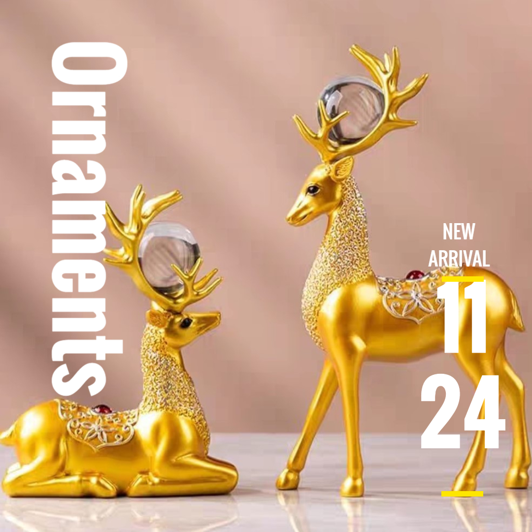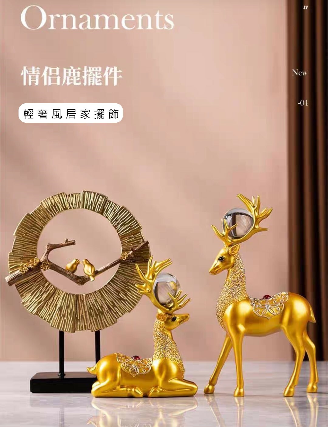 輕奢風招財鹿創意擺飾(站鹿+臥鹿)