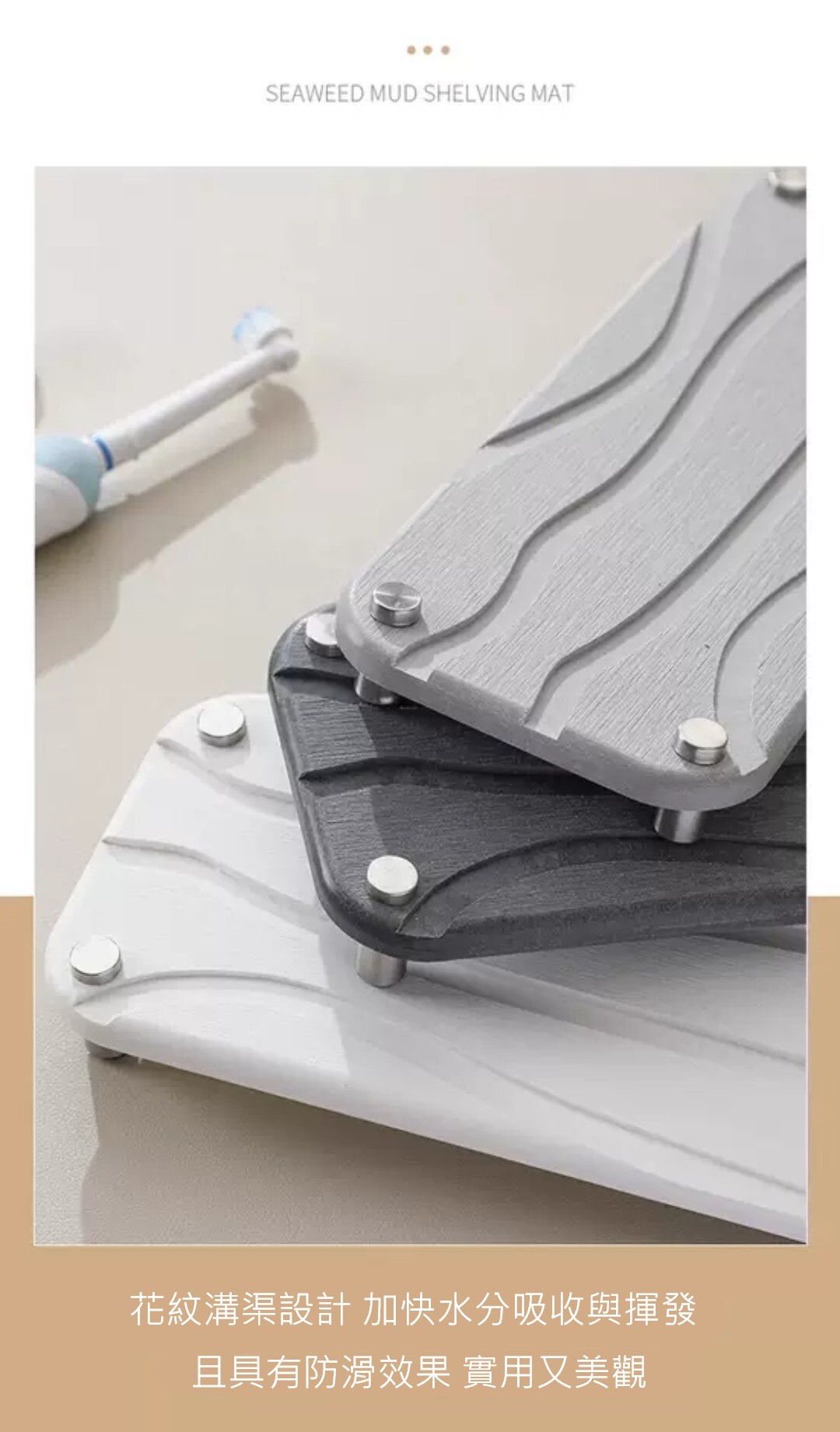 這款硅藻土洗漱墊 質感細膩、速乾防潮
