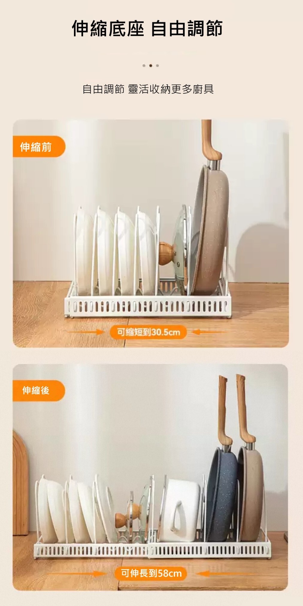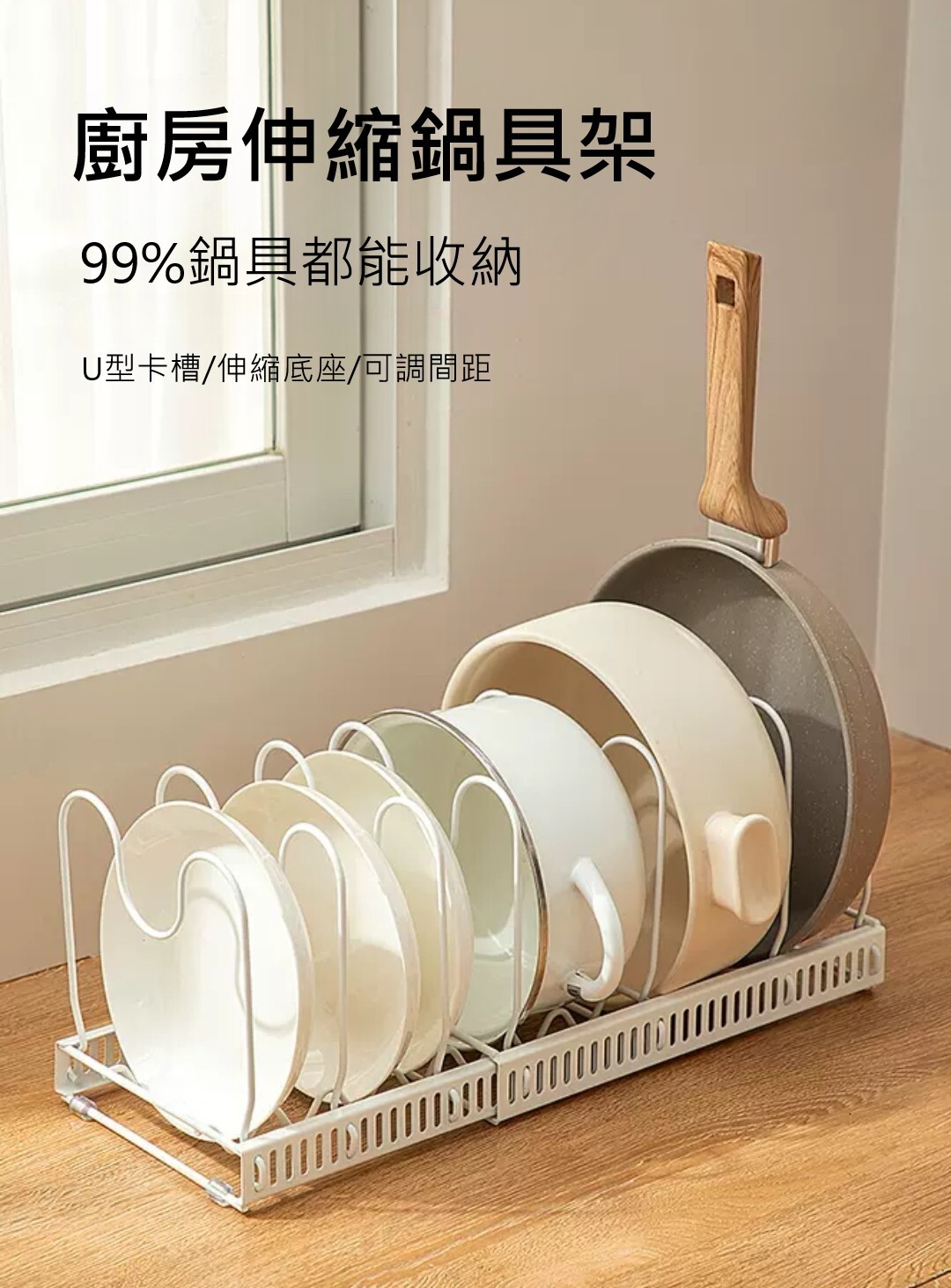 廚房用伸縮碗盤鍋具收納架