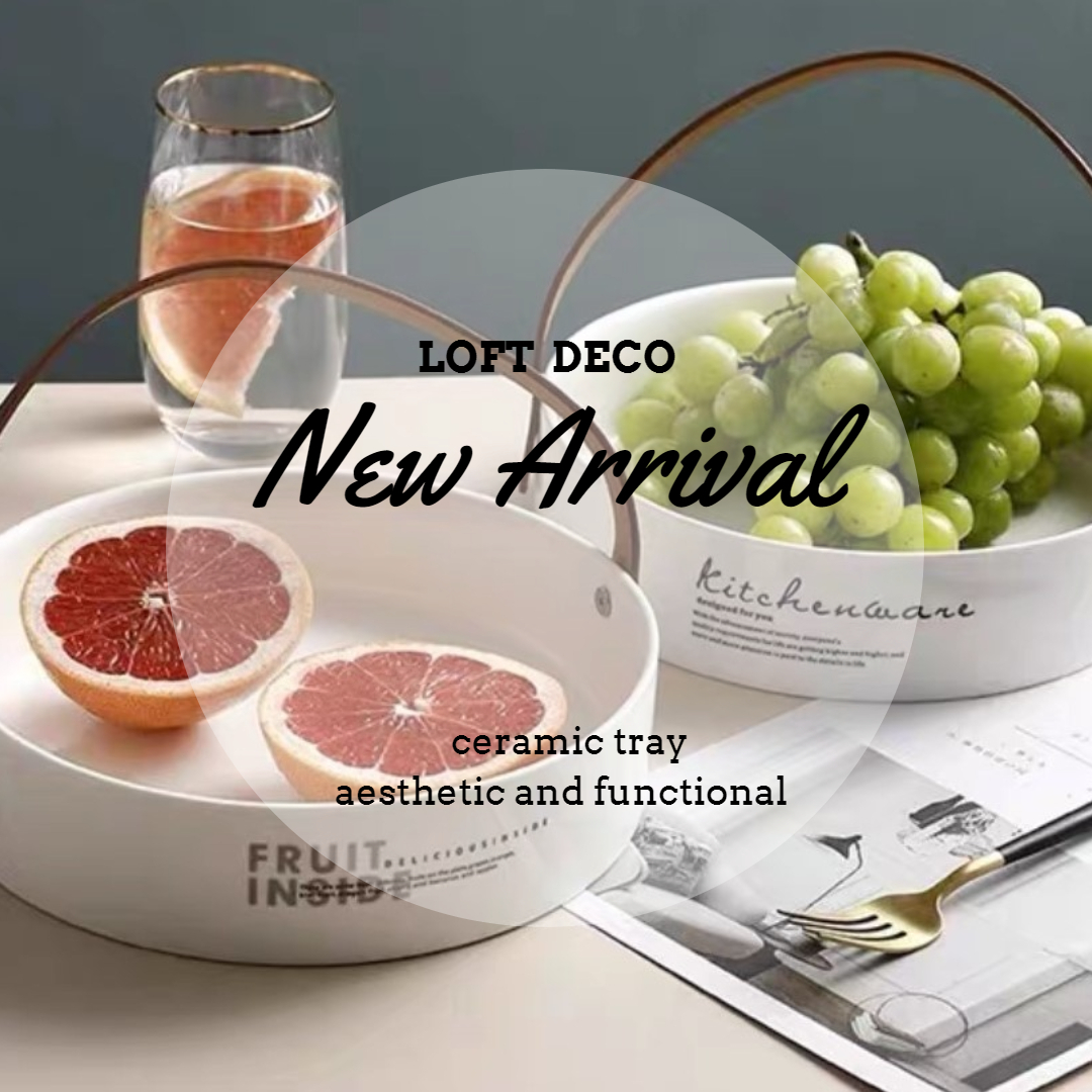 北歐風 皮革提手陶瓷托盤