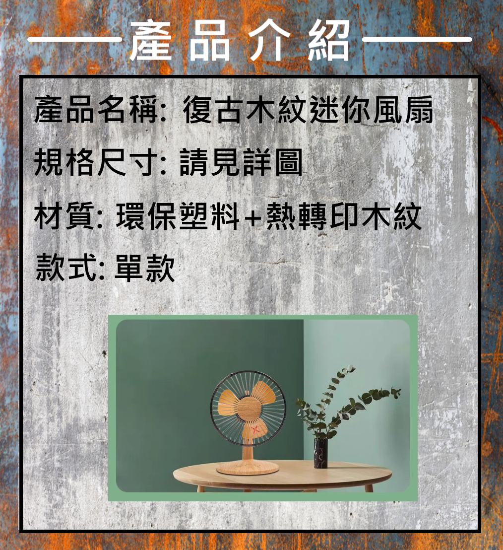 復古木紋迷你風扇
