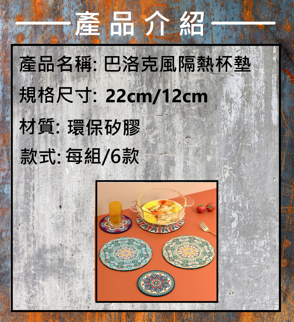 繽紛典雅的巴洛克風格矽膠隔熱墊