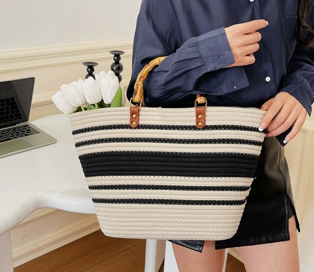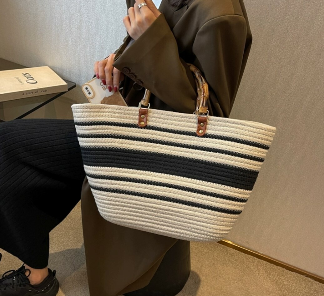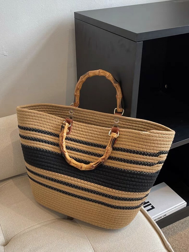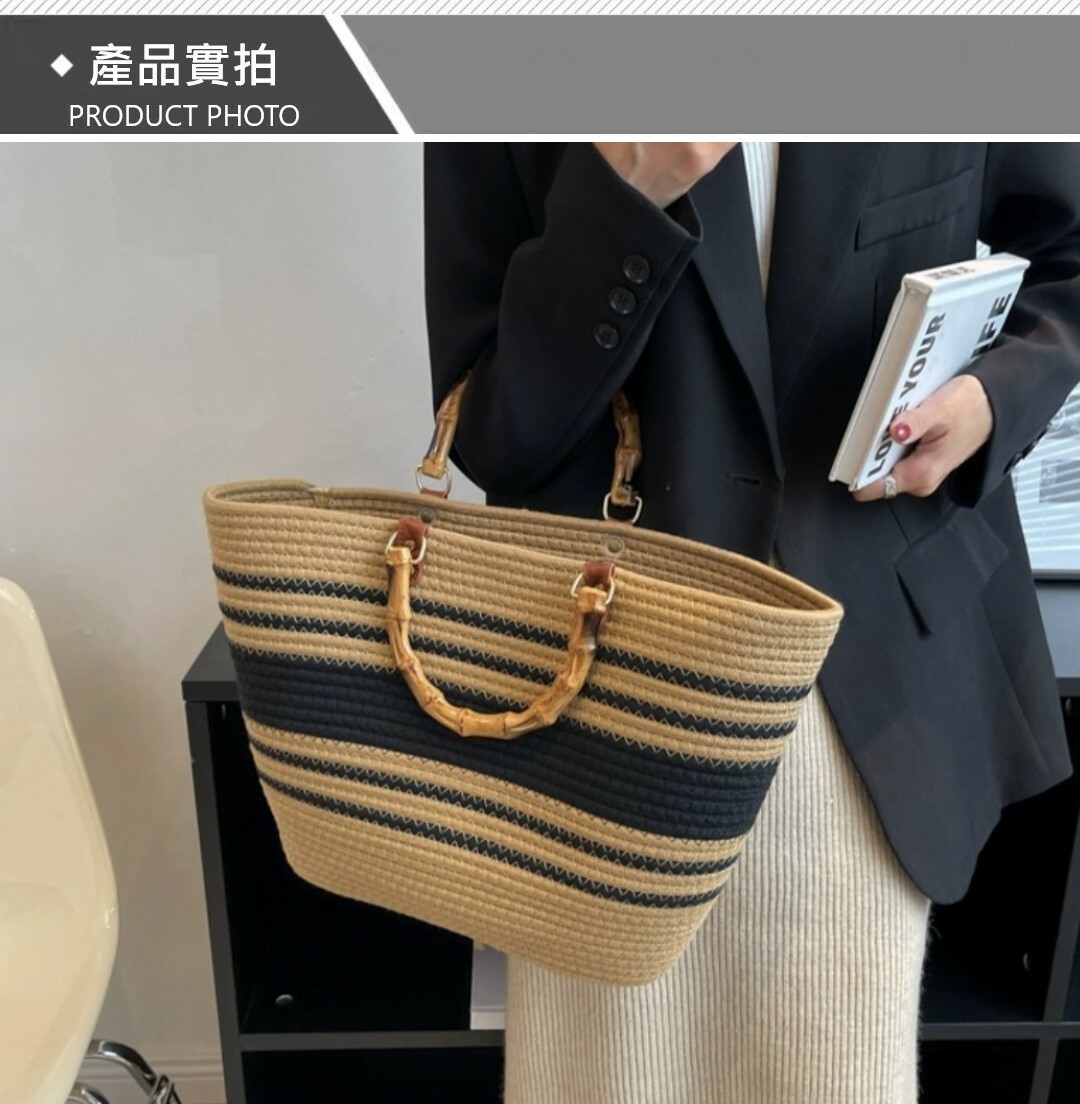 度假風大容量復古草編包