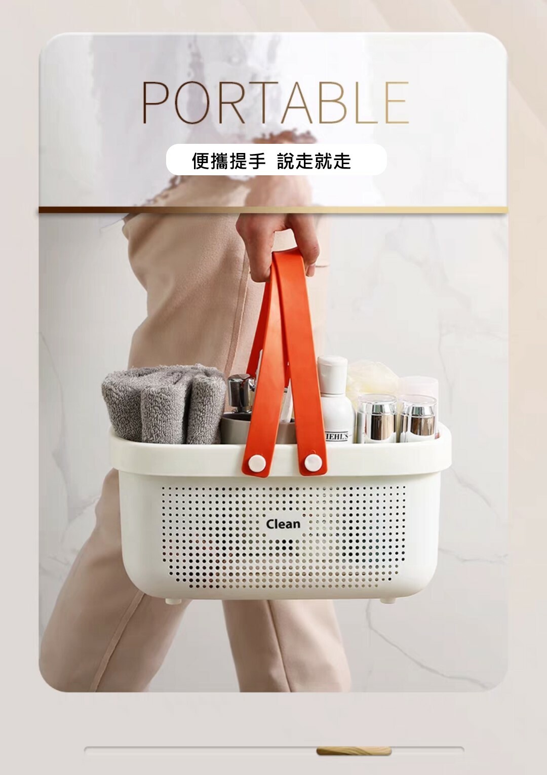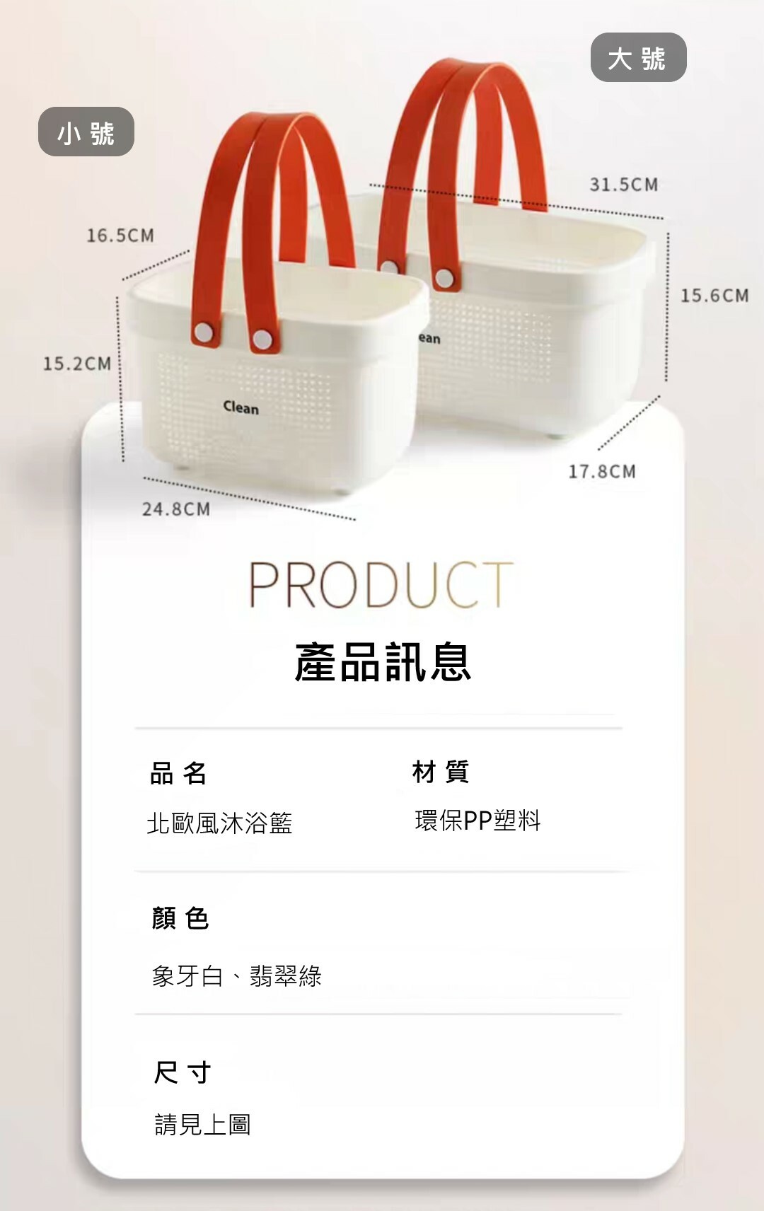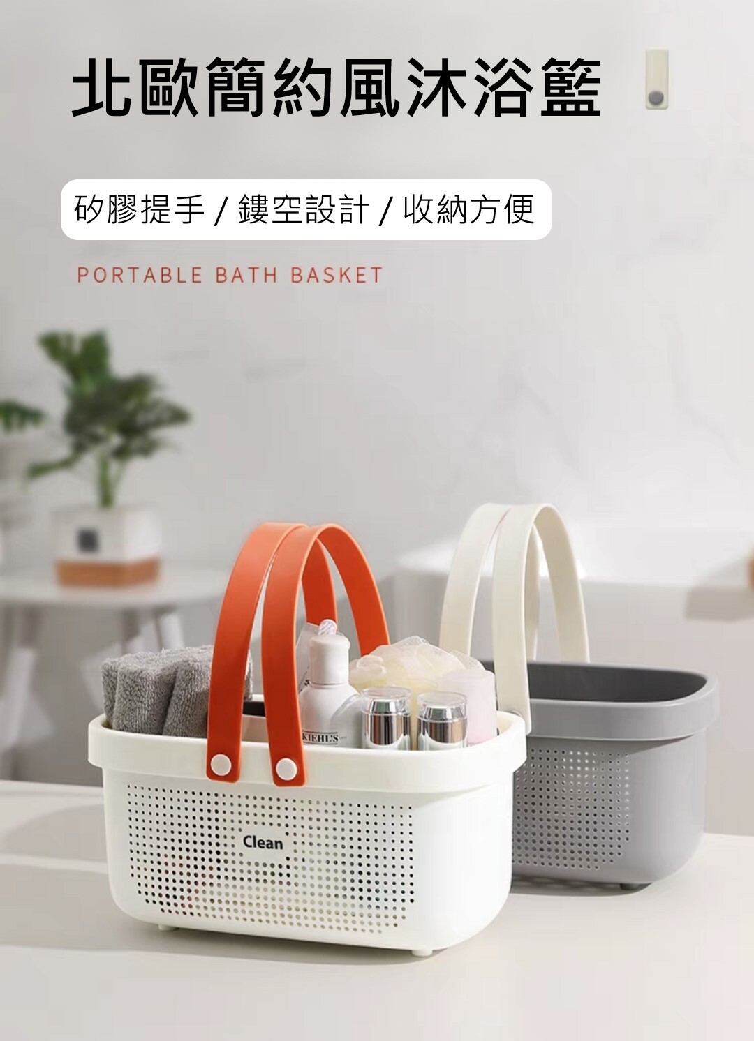 北歐風手提沐浴收納籃(出清款)