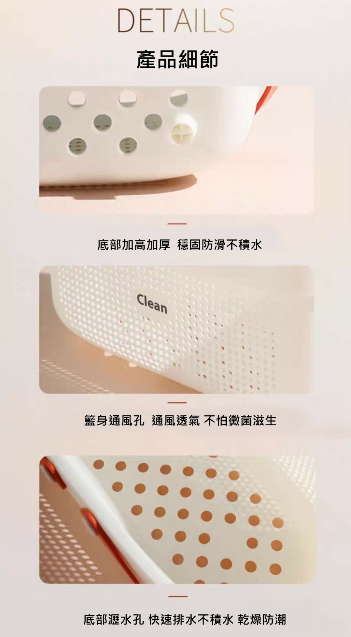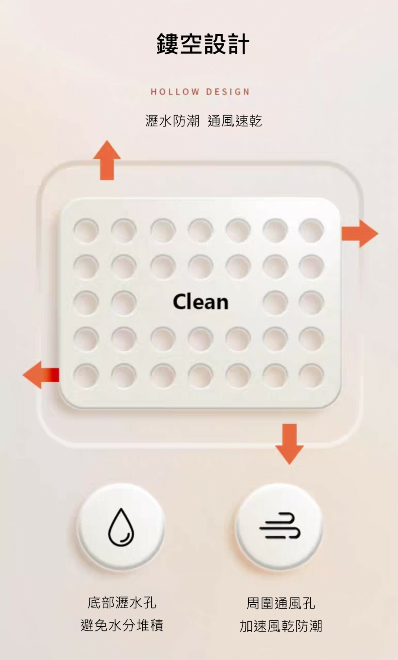 籃身周圍及底部配置通風孔設計
