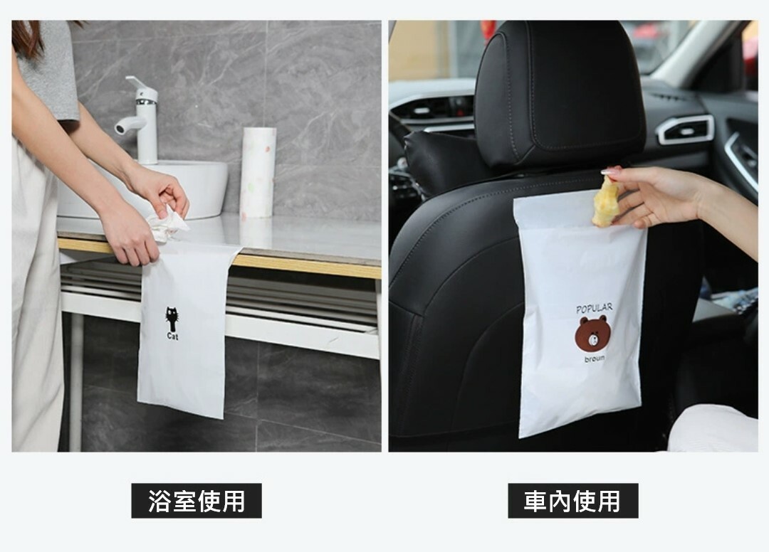 可愛風格黏貼式車用垃圾袋(120入)