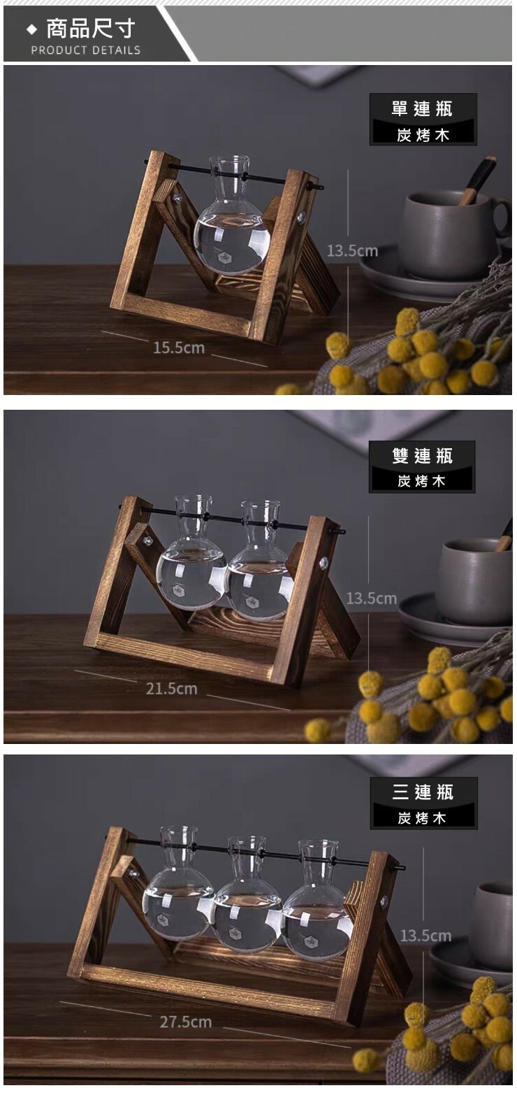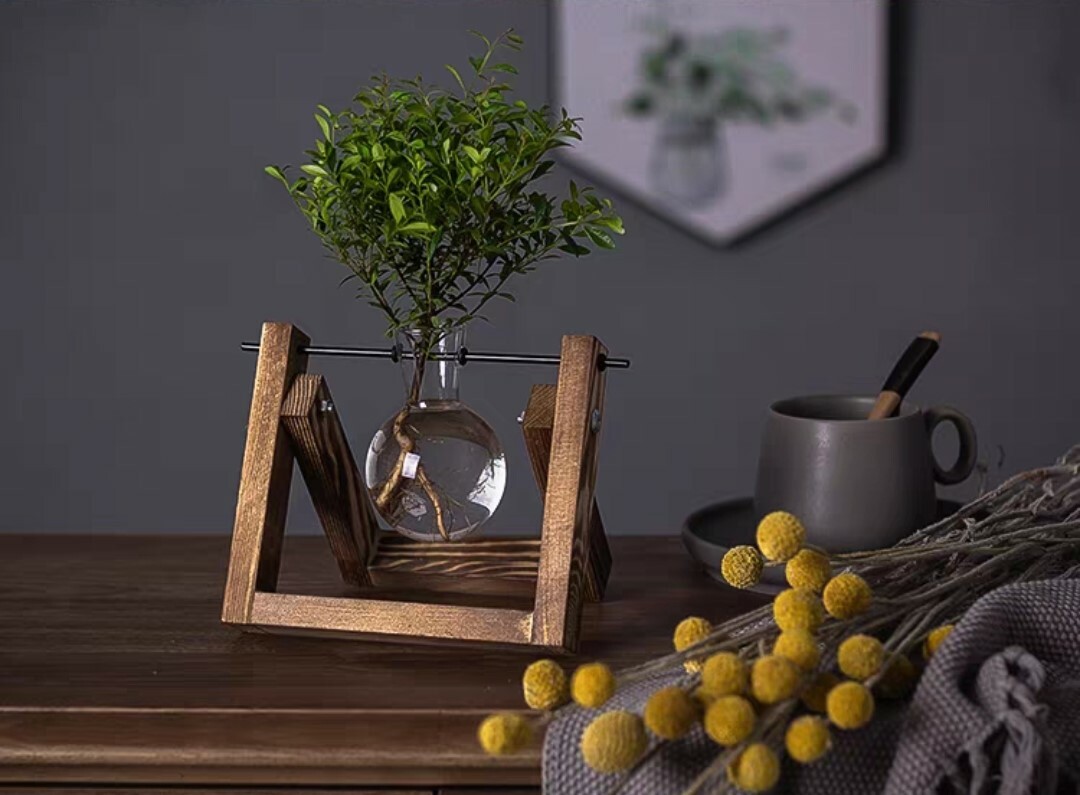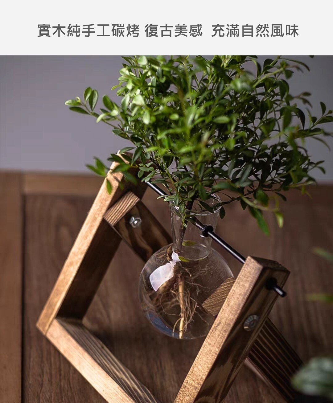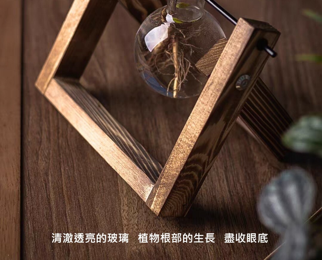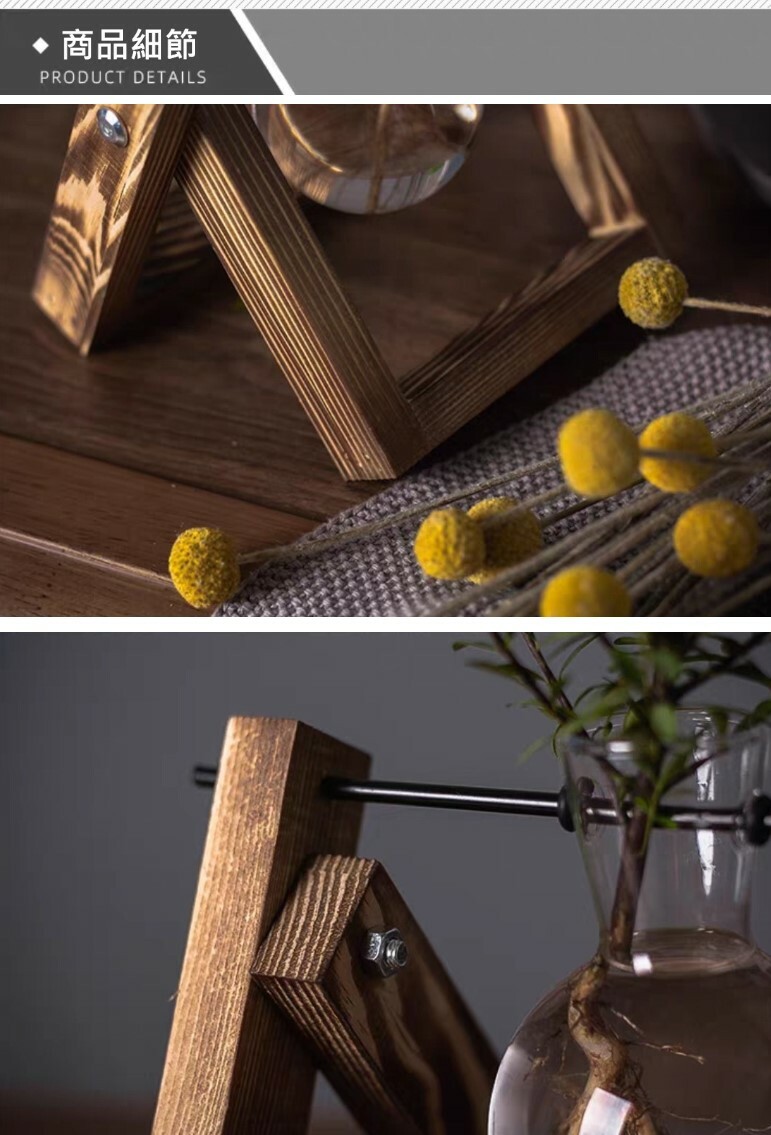 炭烤實木底座搭配玻璃花瓶