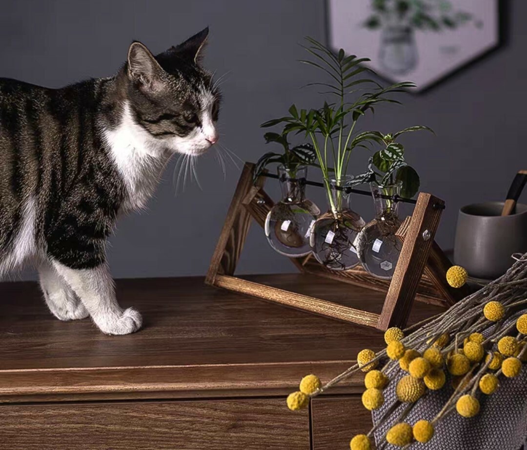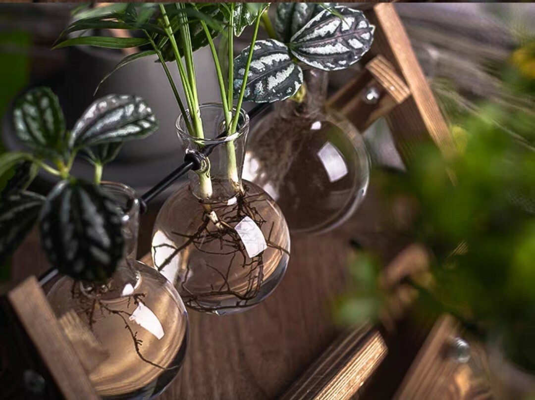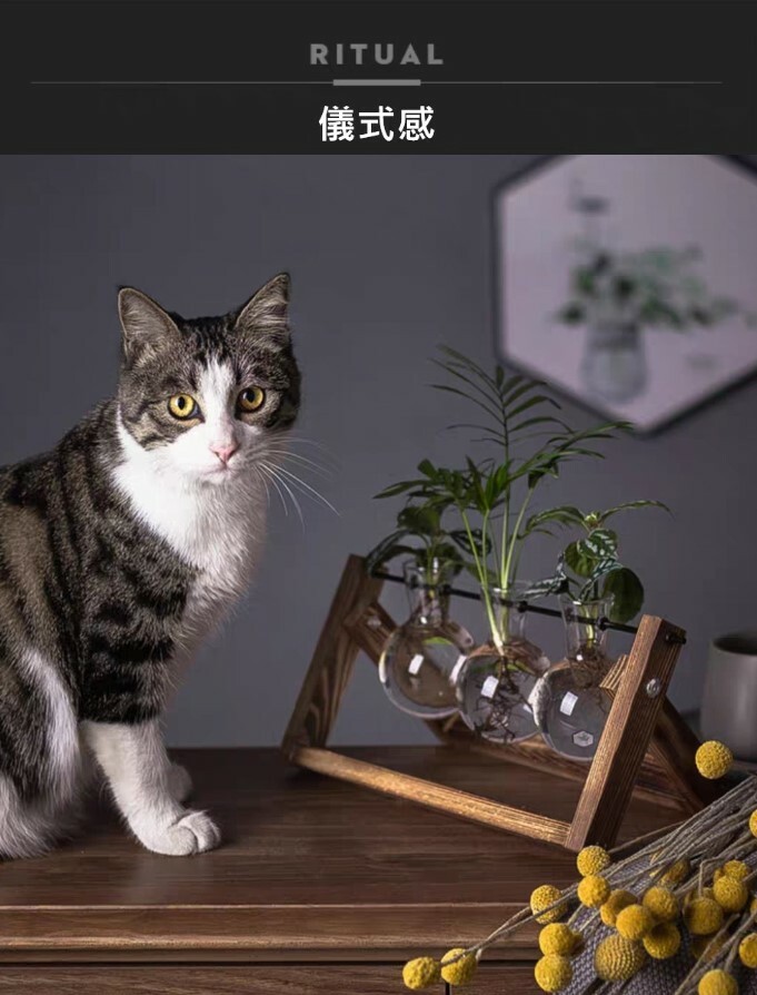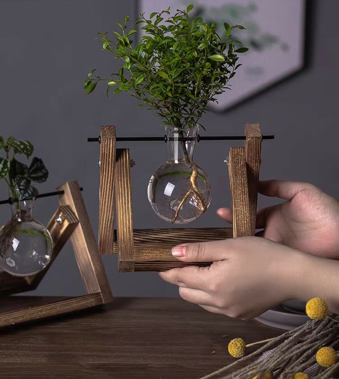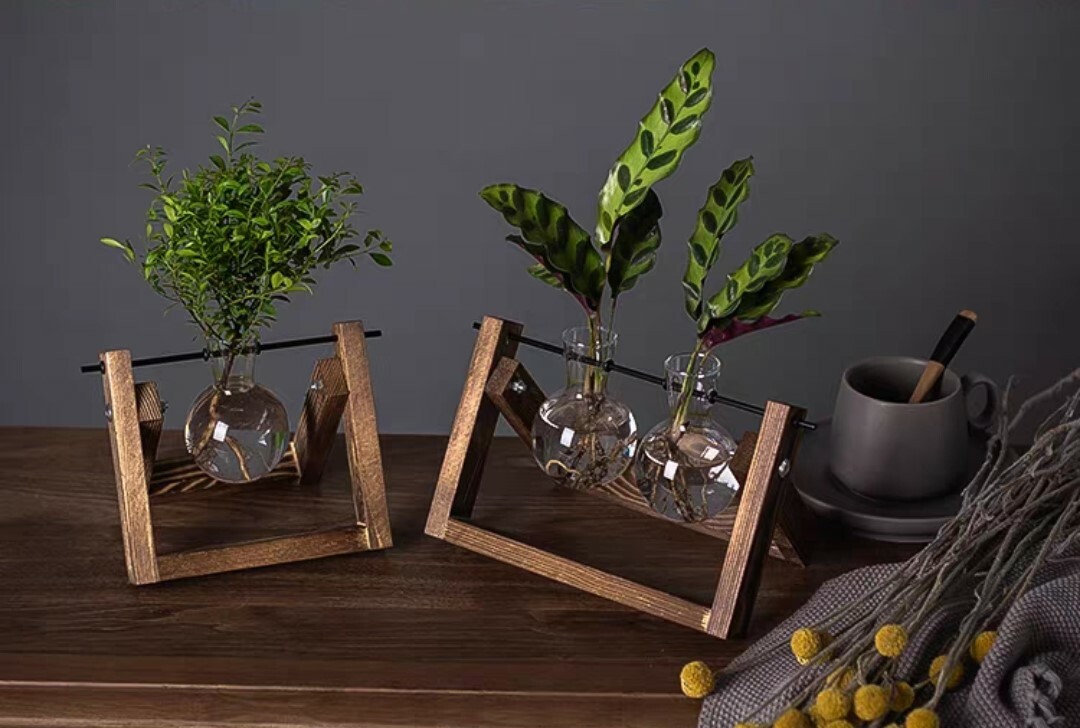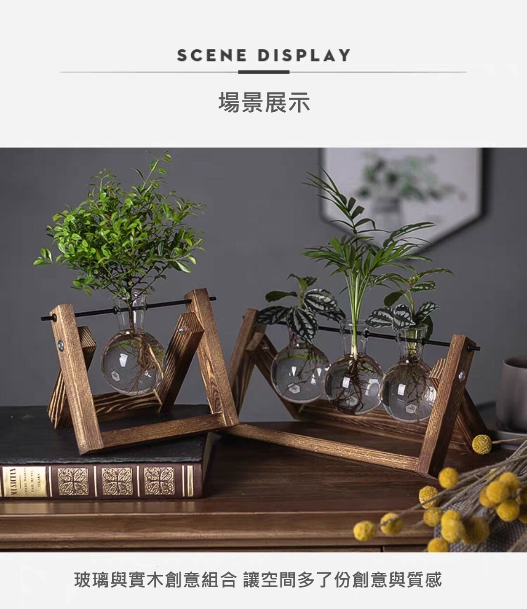 炭烤實木底座搭配玻璃花瓶