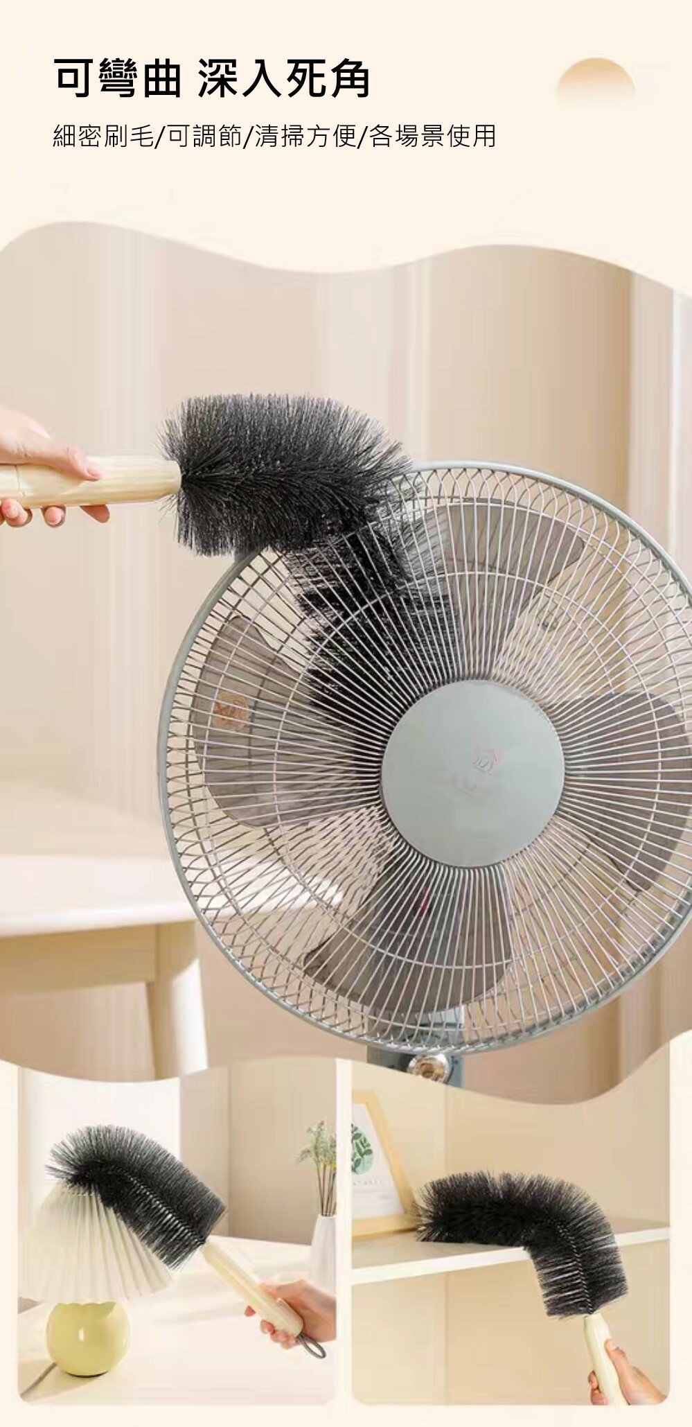 彎曲細刷毛可深入風扇內部深層清潔