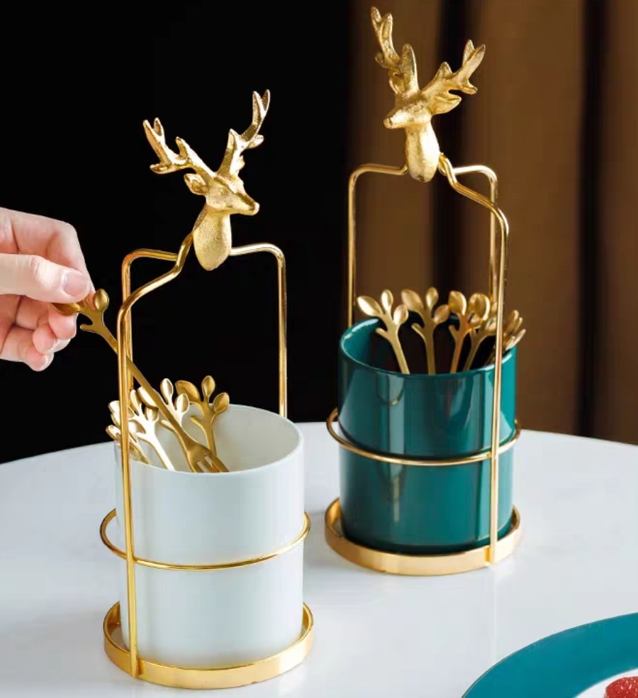 輕奢風水果叉收納罐(贈送5叉)