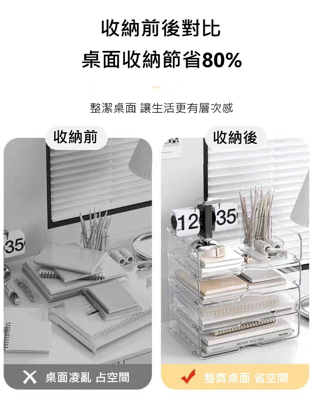 簡約風透明桌面收納架