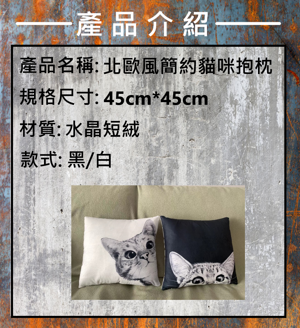 北歐風簡約貓咪抱枕