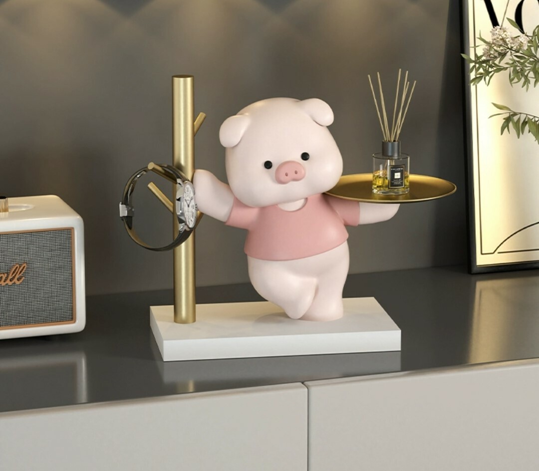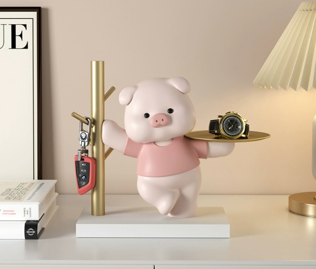 可愛小豬造型托盤收納擺飾