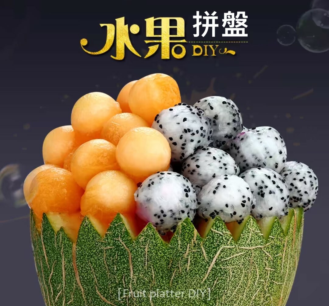 完成各式水果拼盤喔