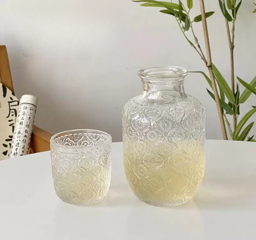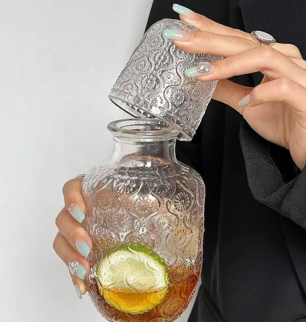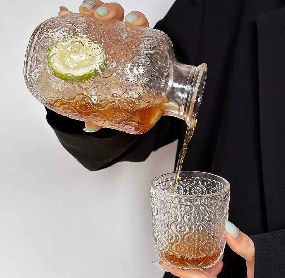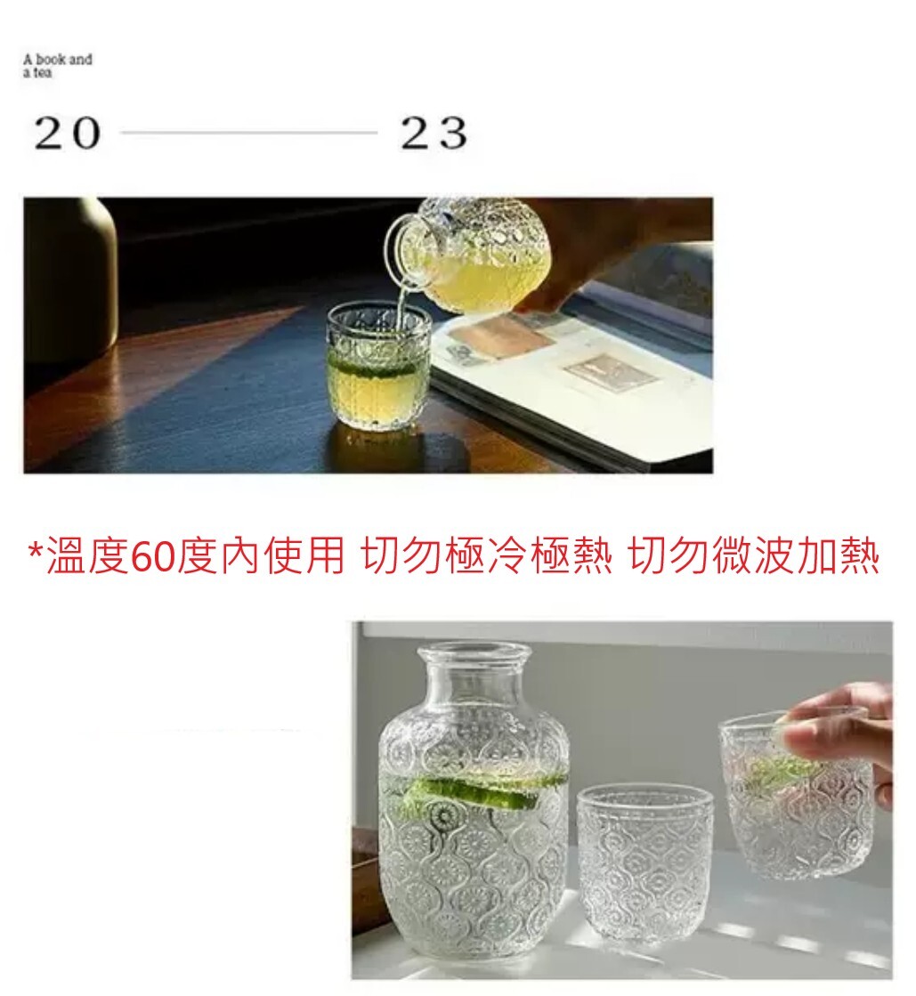 典雅雕花玻璃壺水杯套組