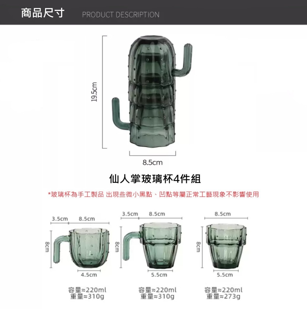 北歐風仙人掌造型玻璃杯組