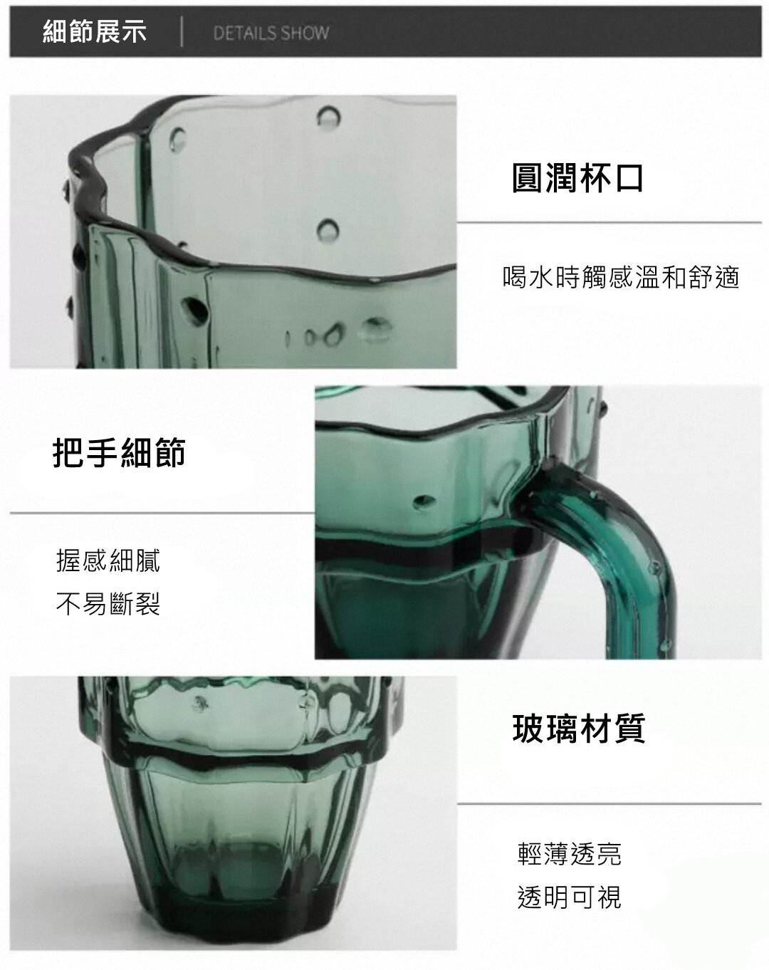 以質感墨綠色玻璃打造