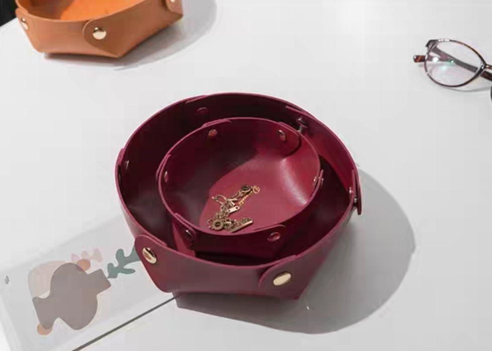 奢華風皮革收納籃