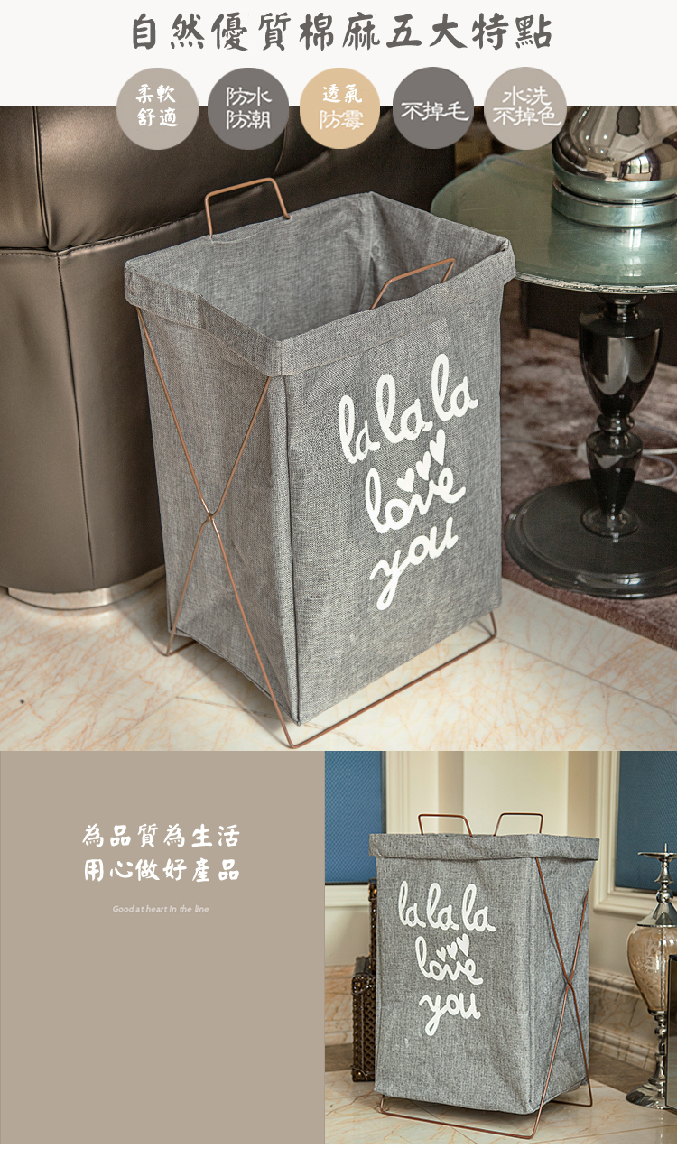 北歐風手提洗衣籃收納籃(支架款可折疊)