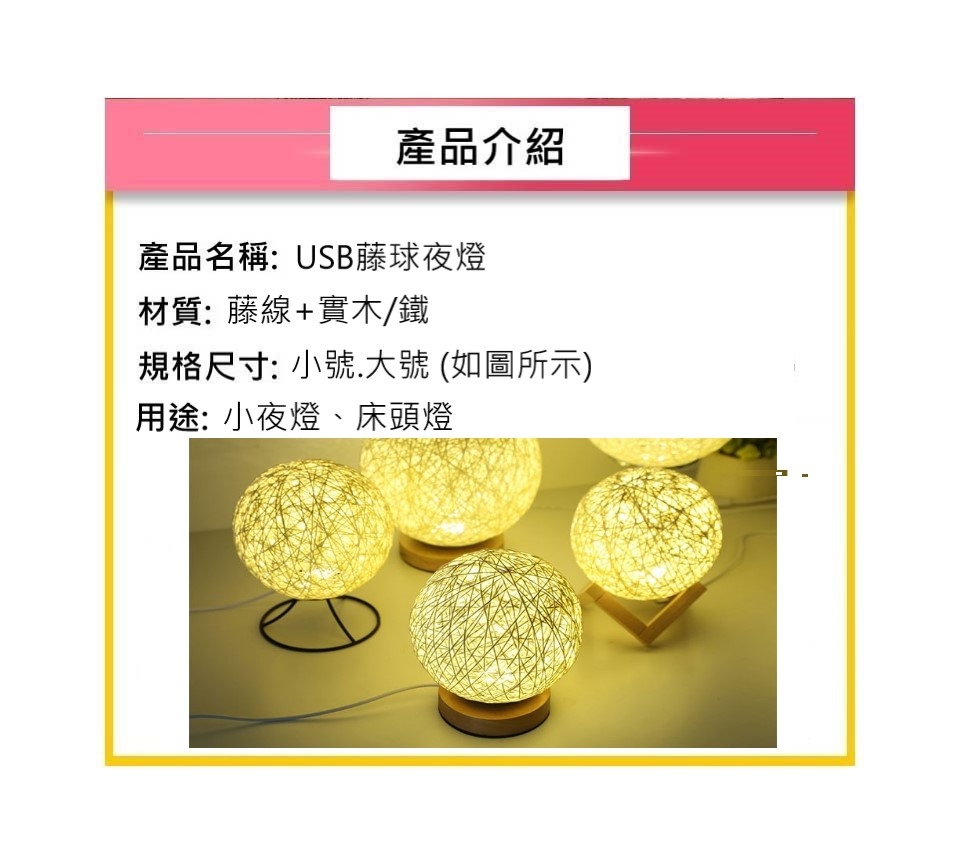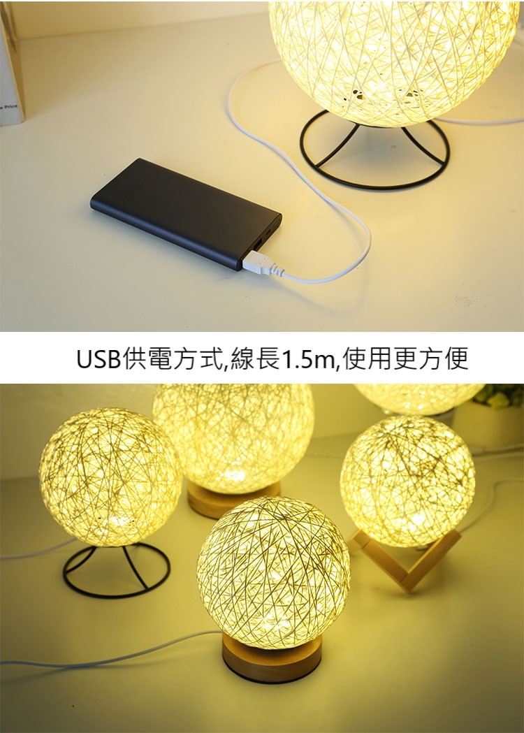日式風USB藤球夜燈