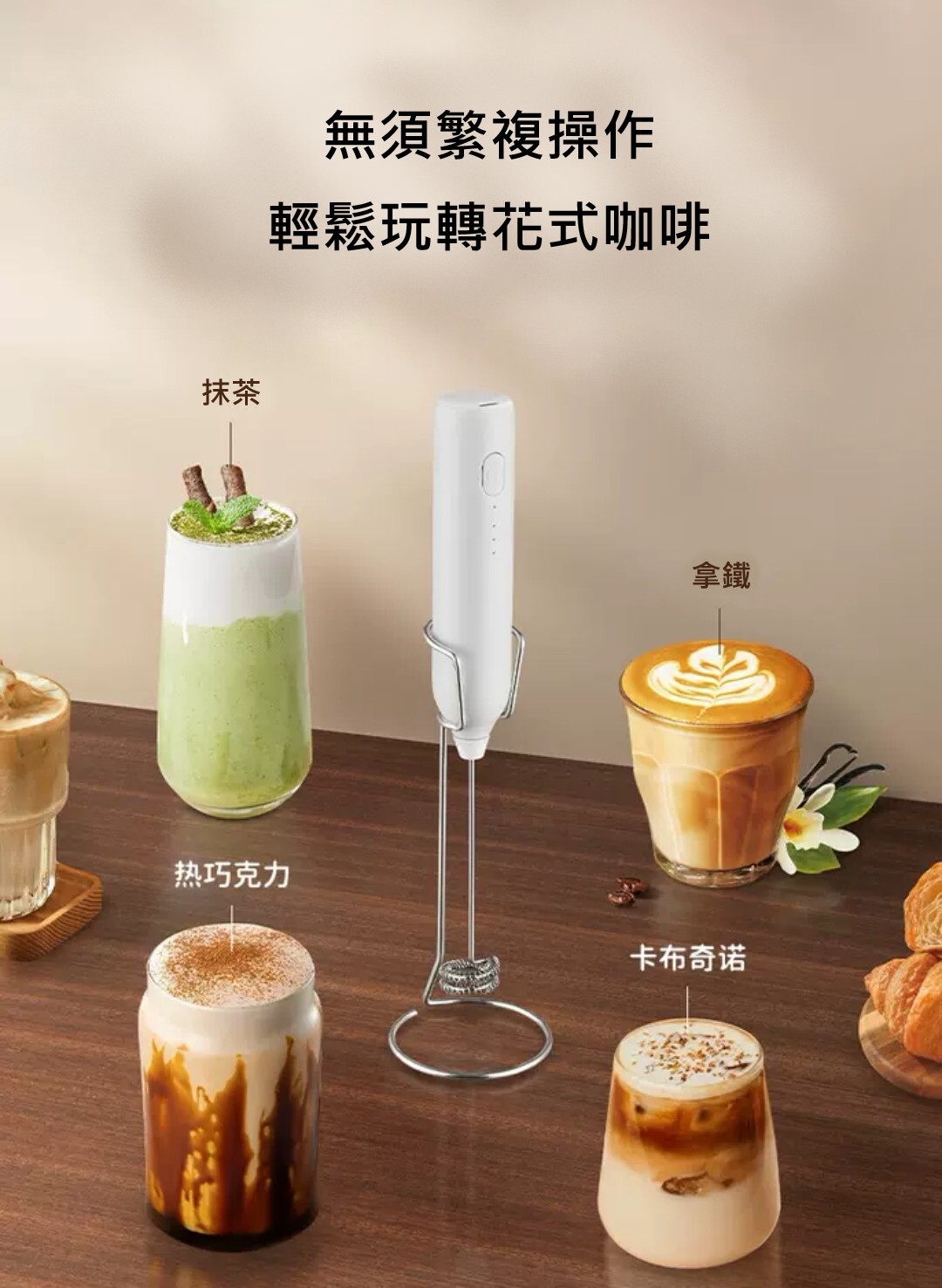 手持充電式電動奶泡器套組