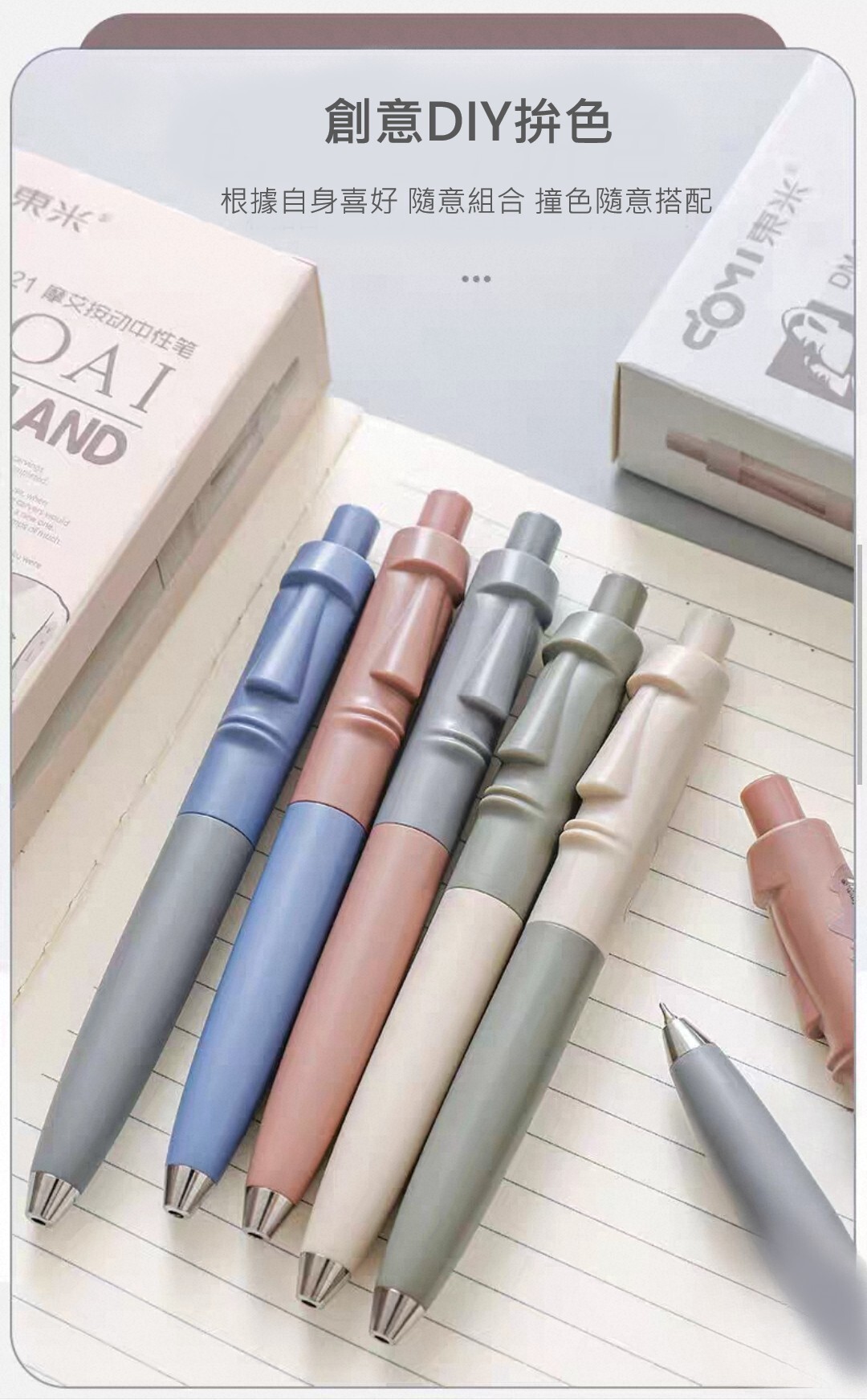 摩艾造型黑色中性筆(5入/組)