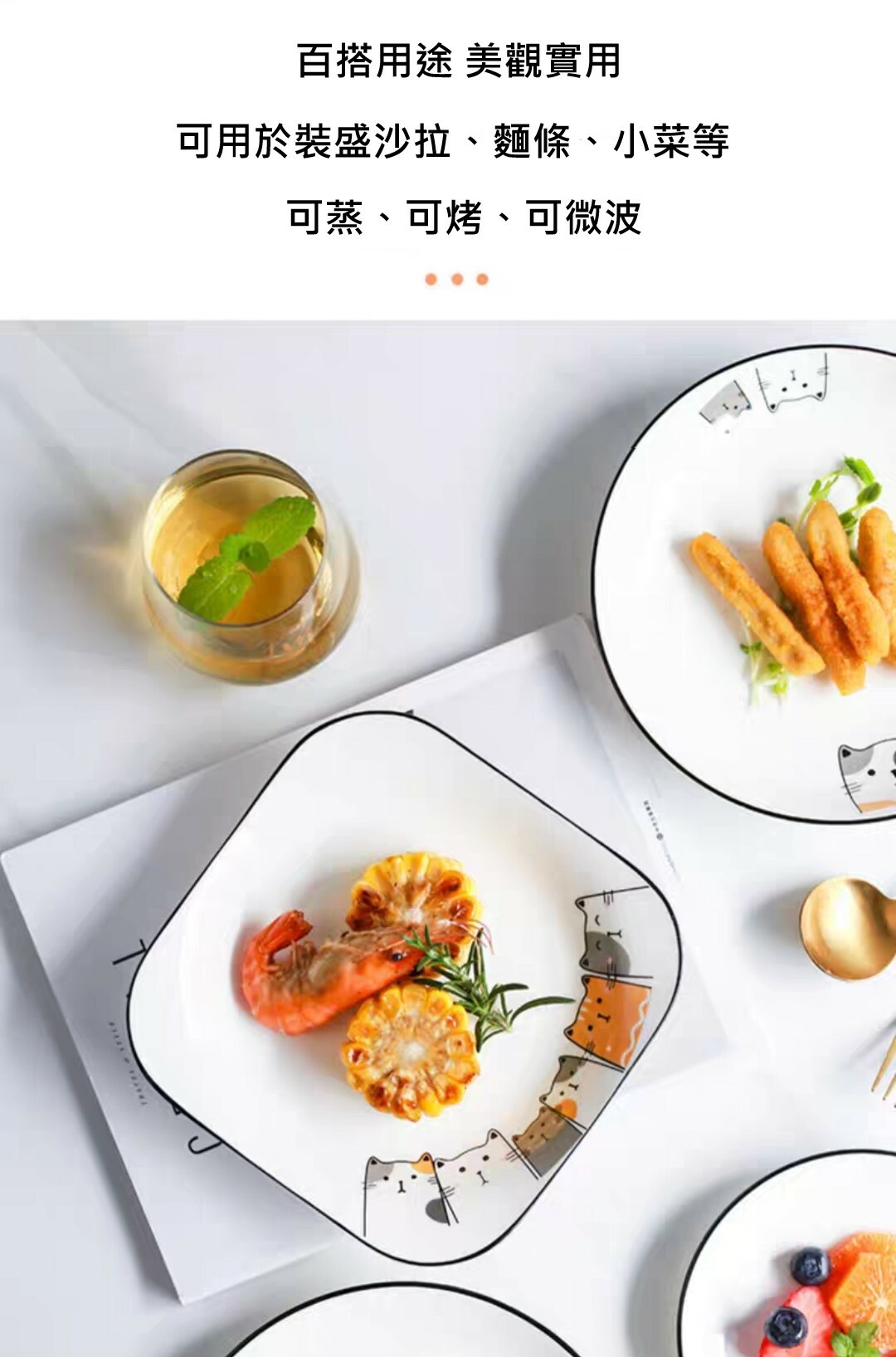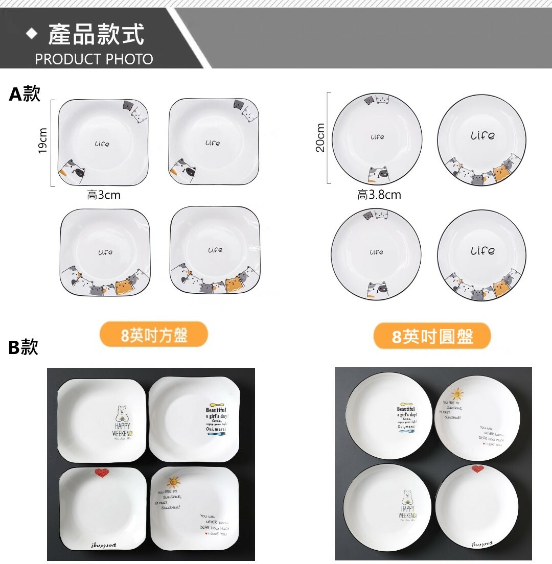 喵星人創意黑邊餐盤(4件組)