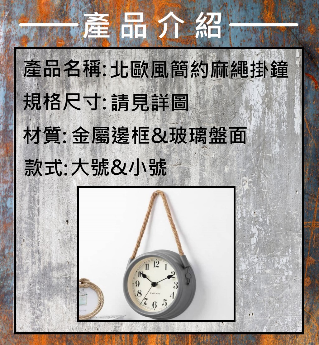 北歐風簡約麻繩掛鐘