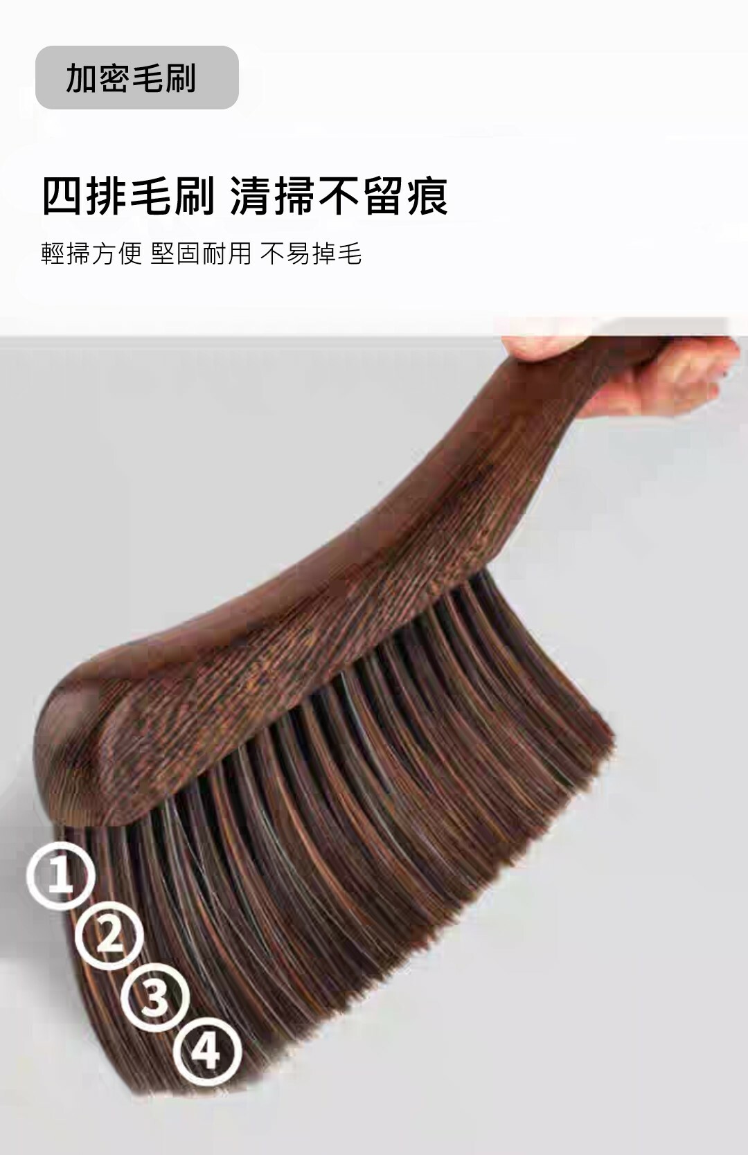 搭配超級柔順的四排刷毛 輕鬆清潔不傷表面