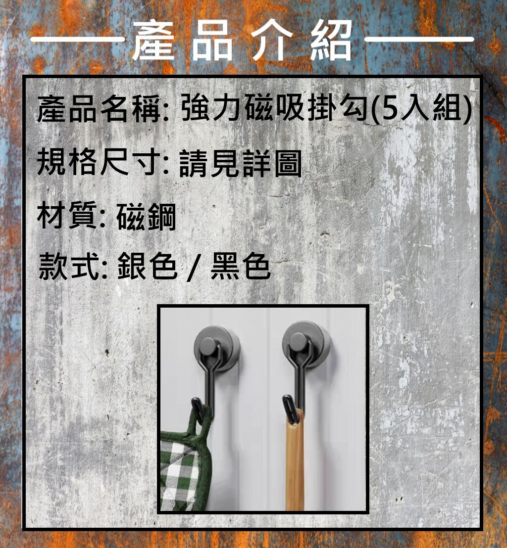 多功能強力磁吸掛勾(5入組)