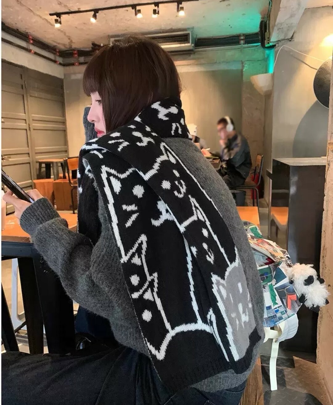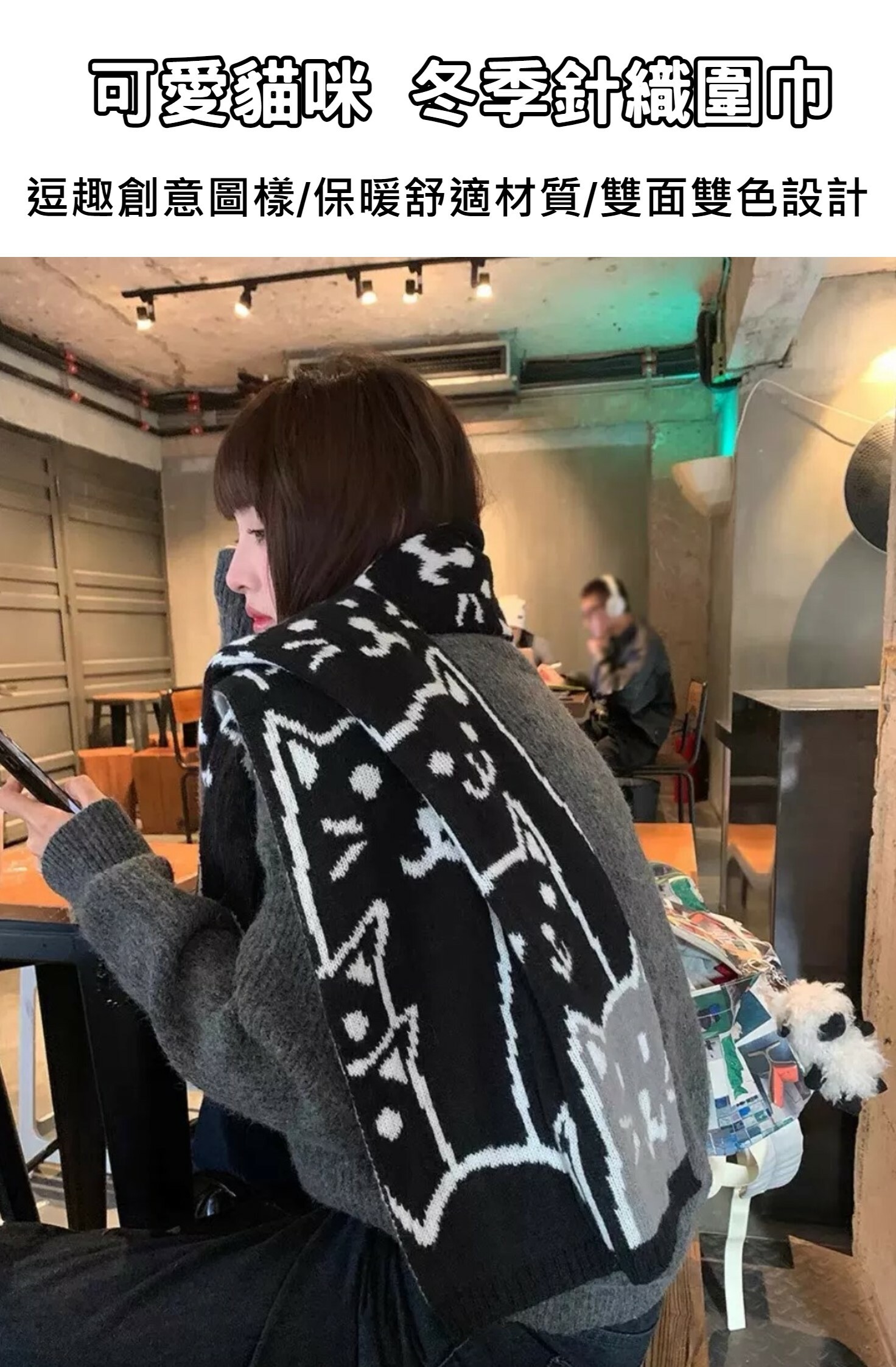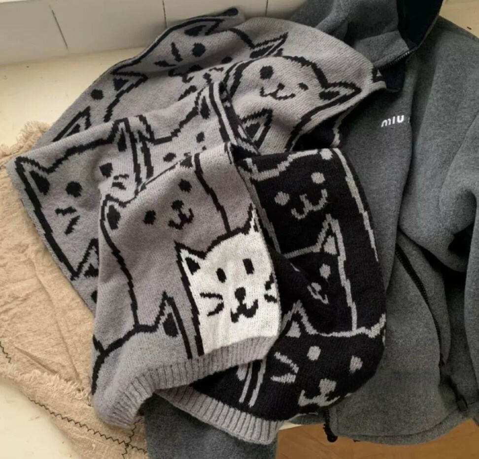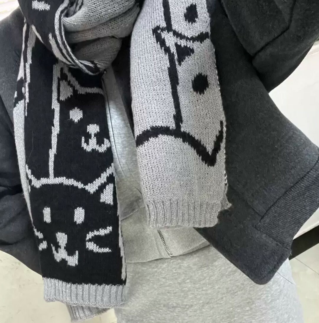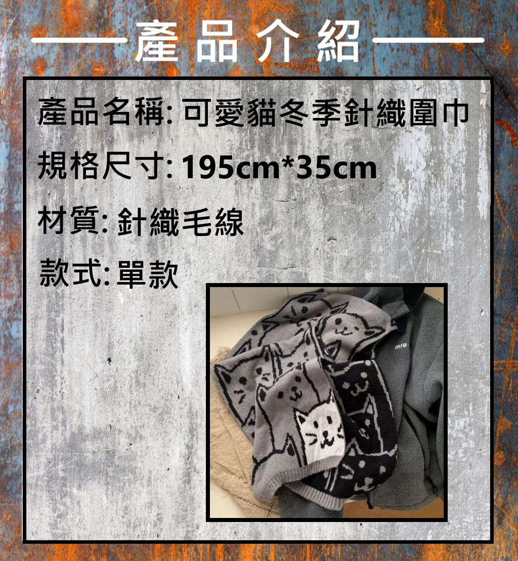 可愛貓咪冬季針織圍巾