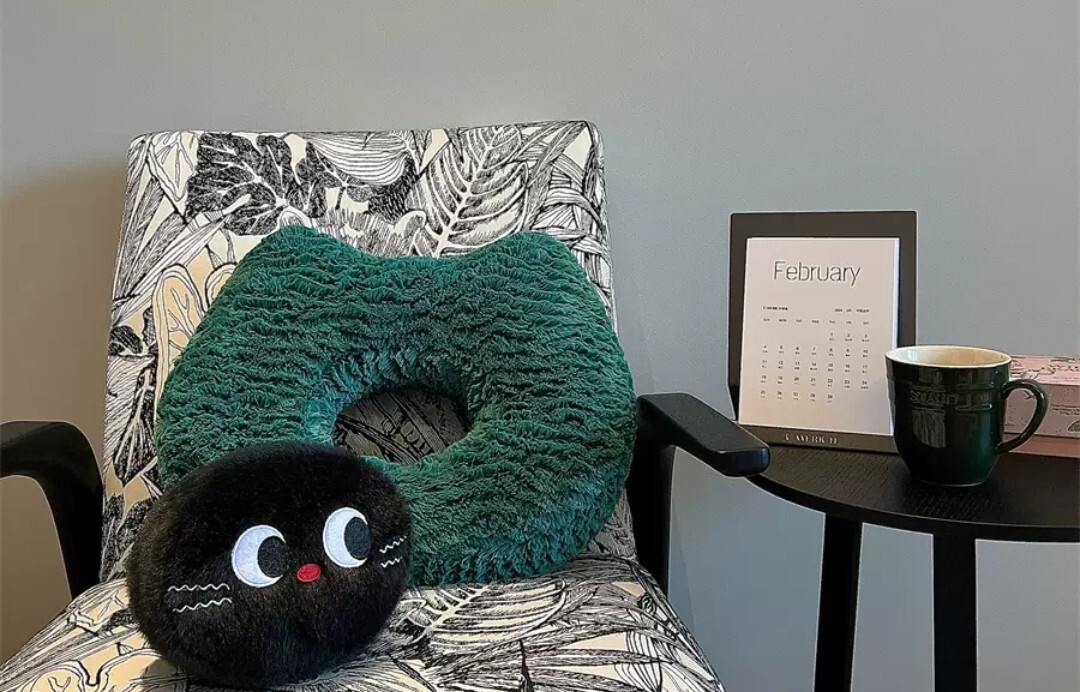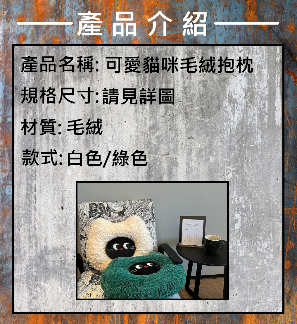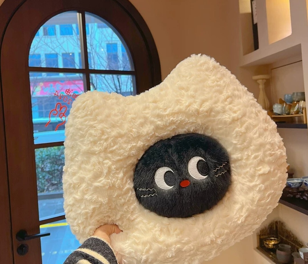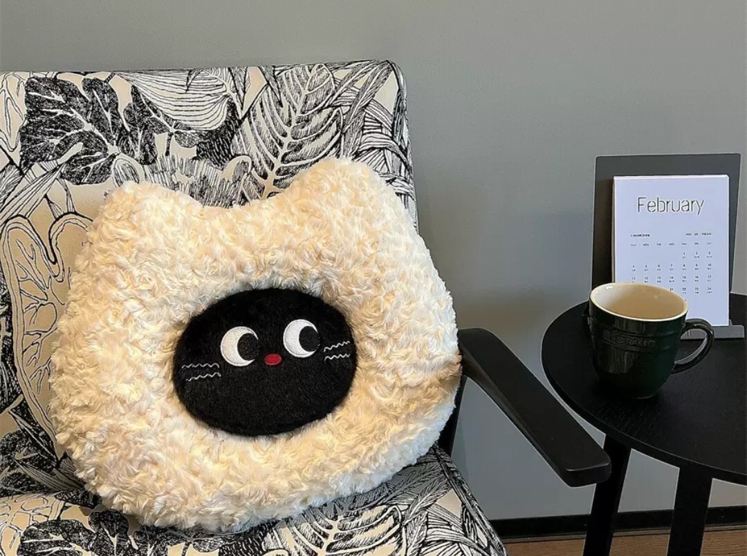 這款貓咪毛絨抱枕擁有逗趣療癒的造型