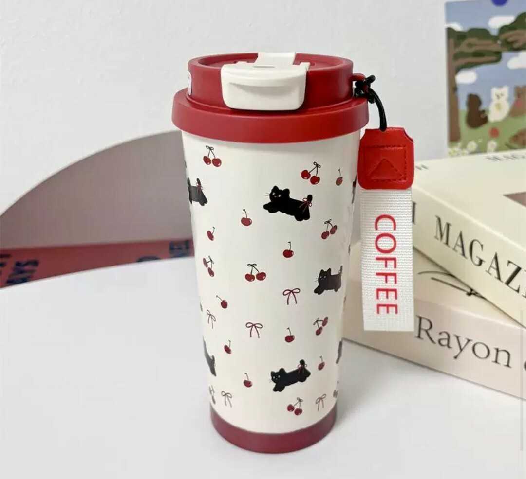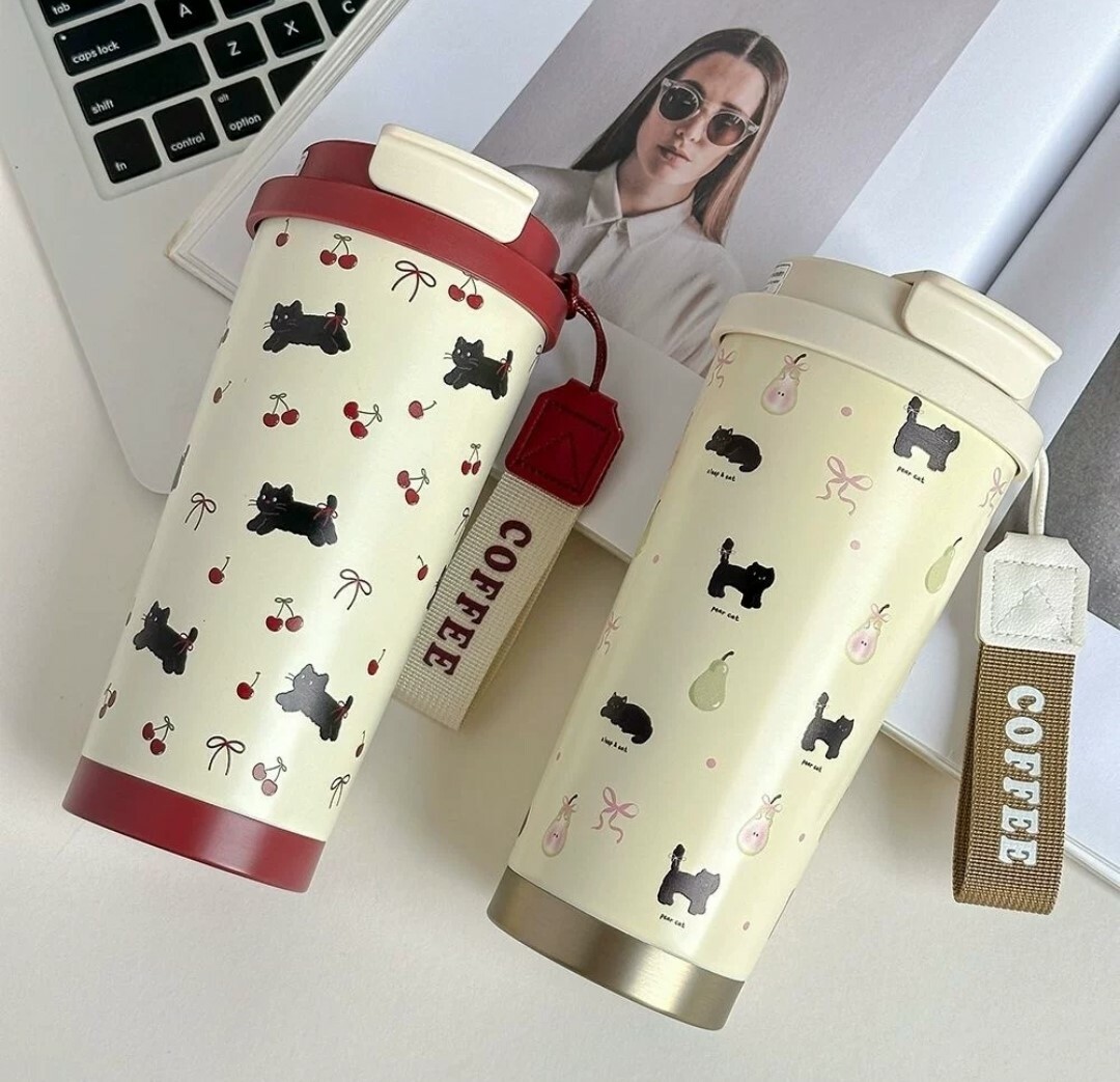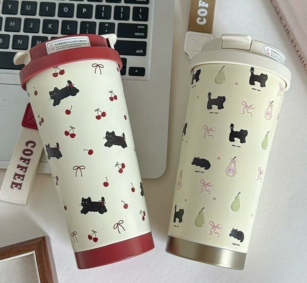 這款復古風小黑貓保溫杯