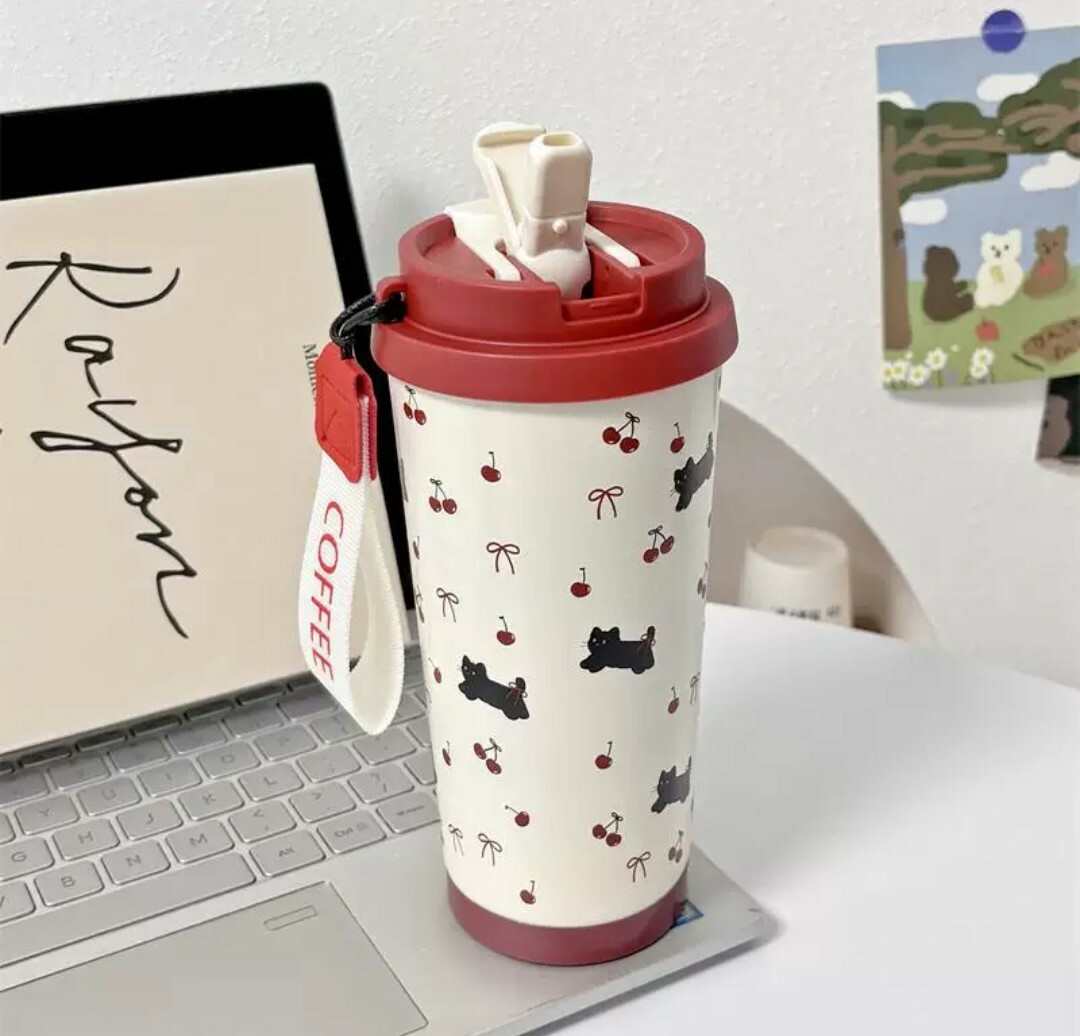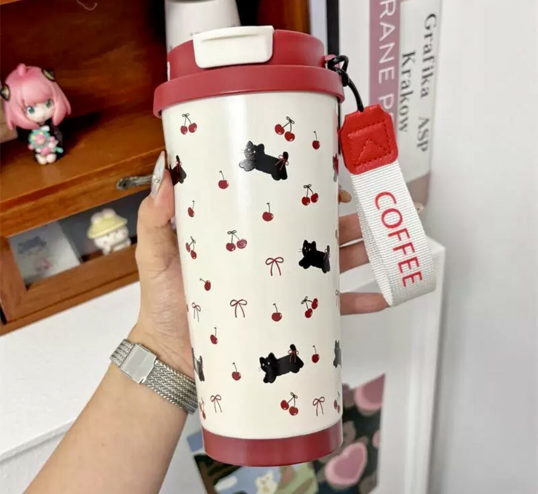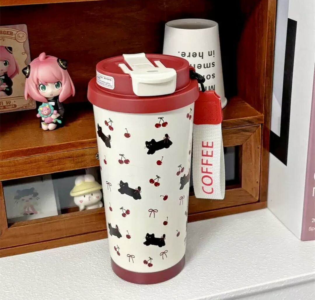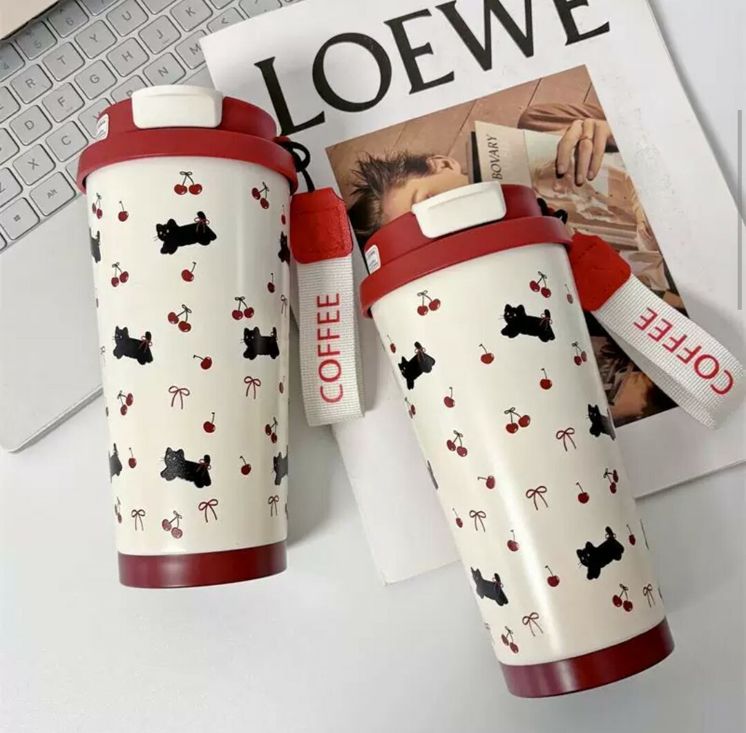 這款復古風小黑貓保溫杯
