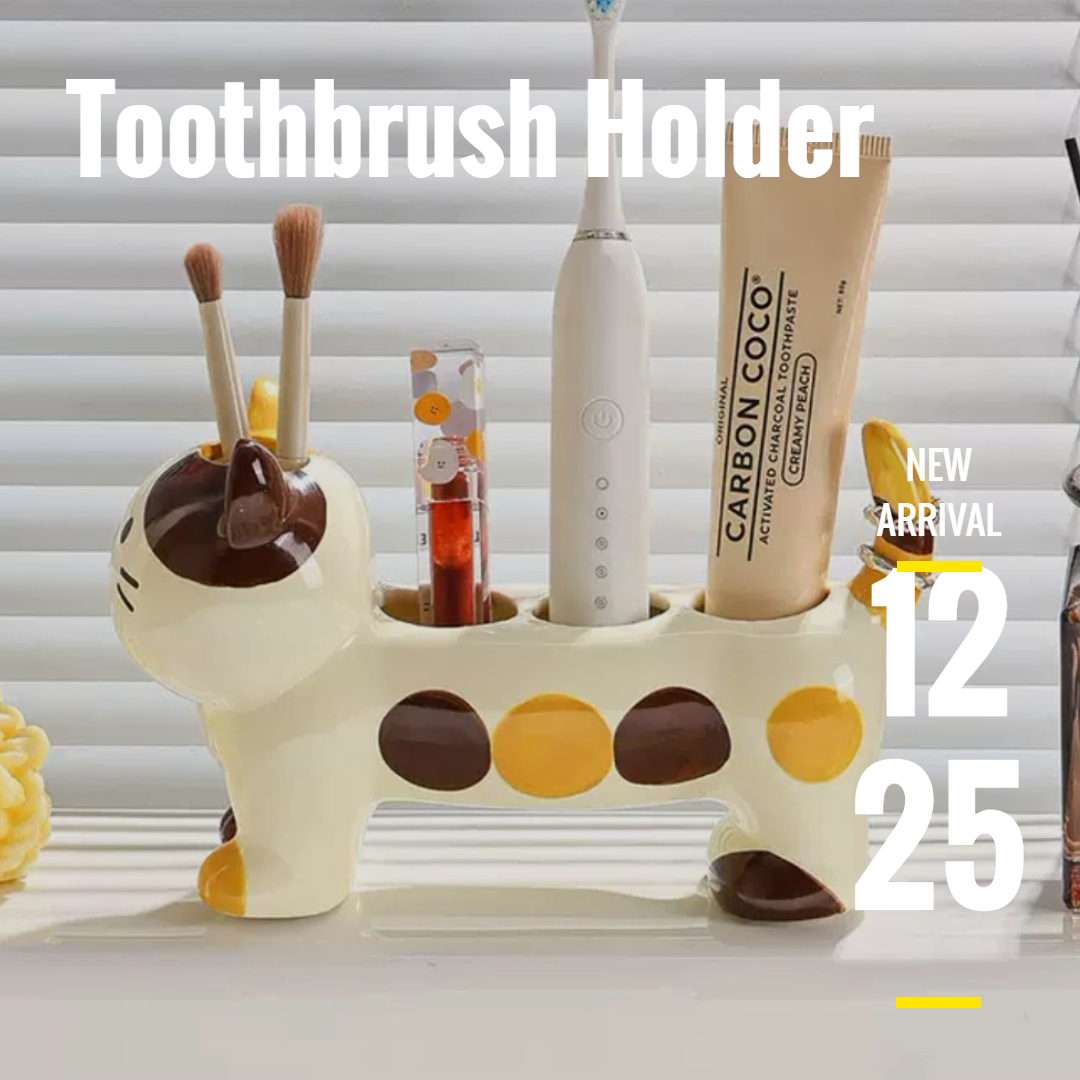 這款三花貓陶瓷牙刷架 可愛造型增添浴室趣味