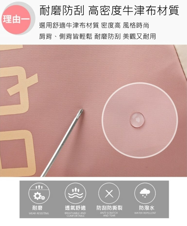 搭配防刮耐用的防潑水牛津布材質