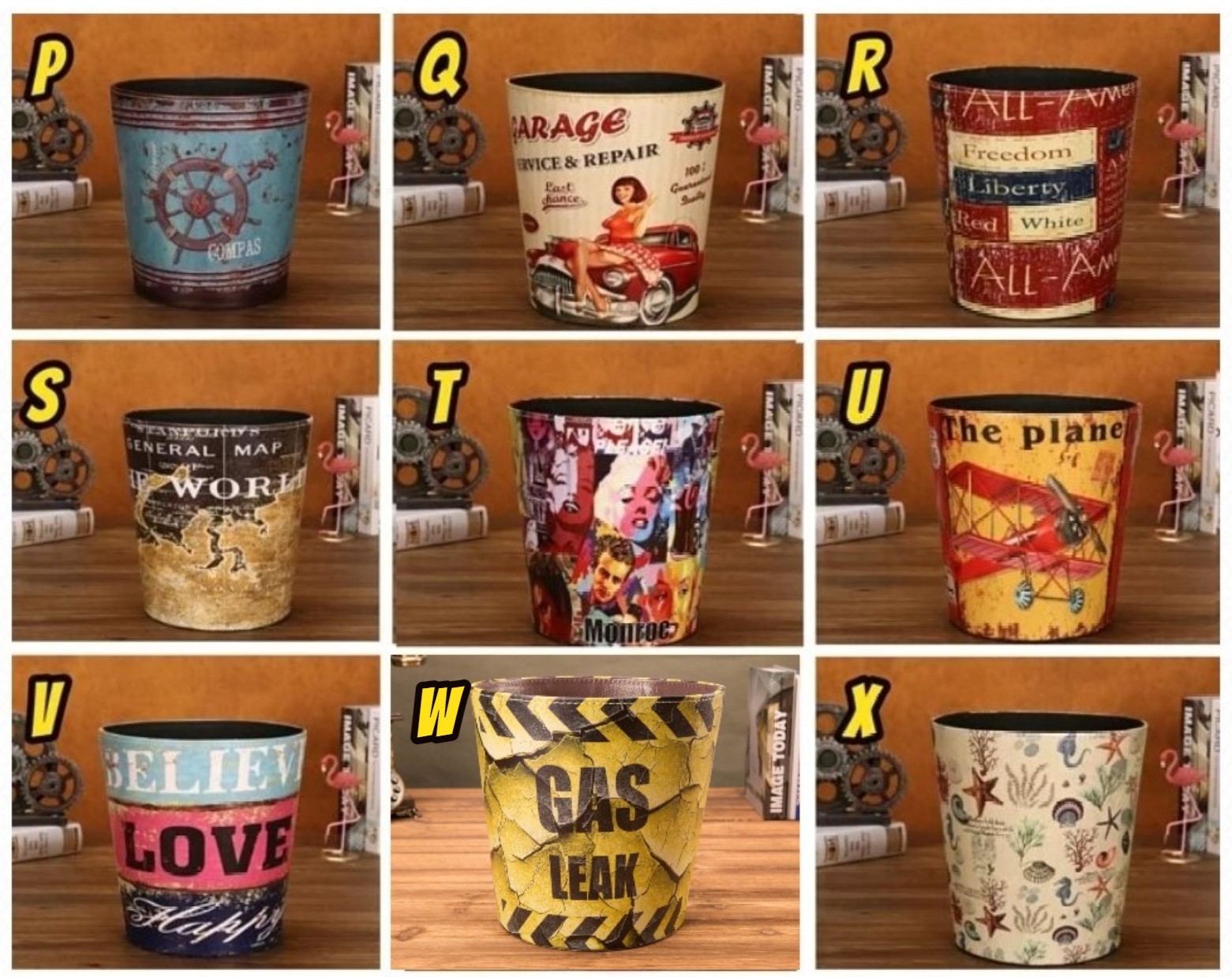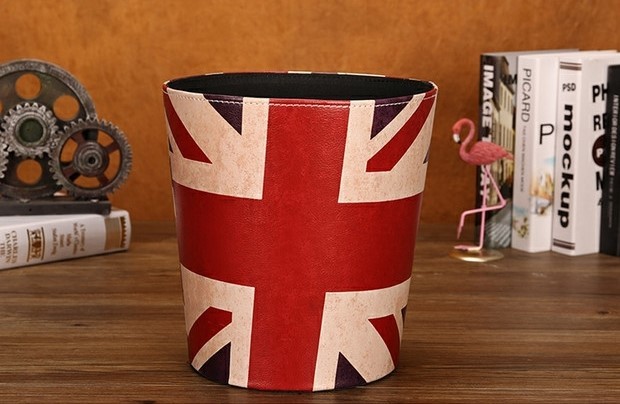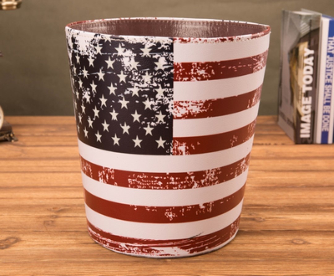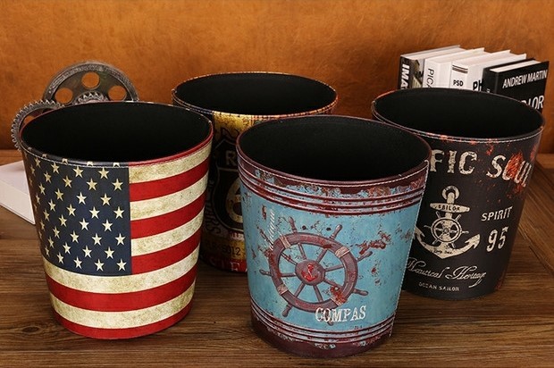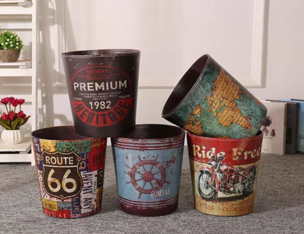美式復古鄉村風的皮革垃圾桶